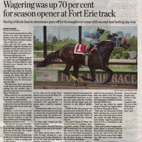 - Wagering was up 70 per cent for season opener at Fort Erie track : Racing without fans in attendance pays off for thoroughbred venue with second-best betting day ever