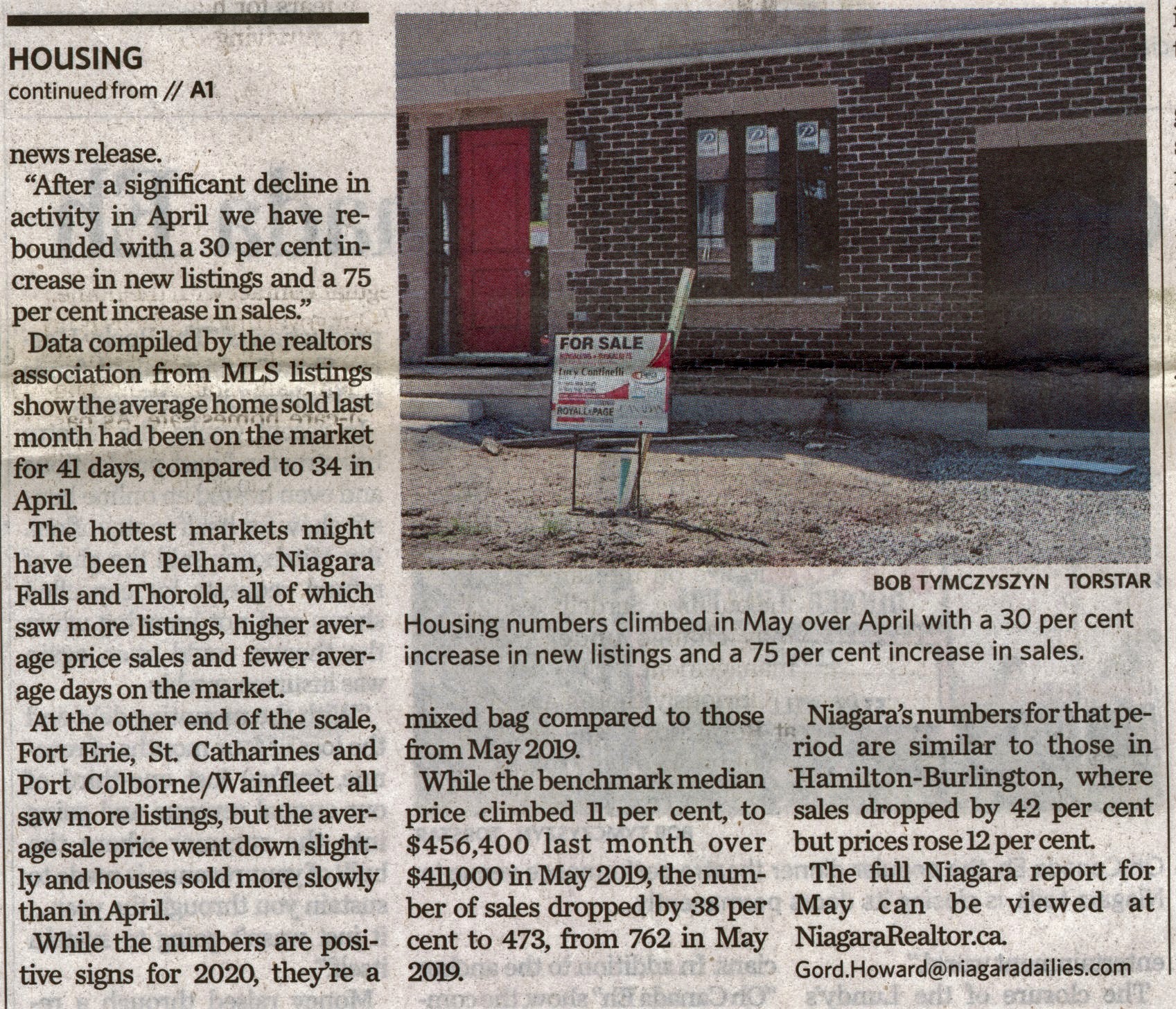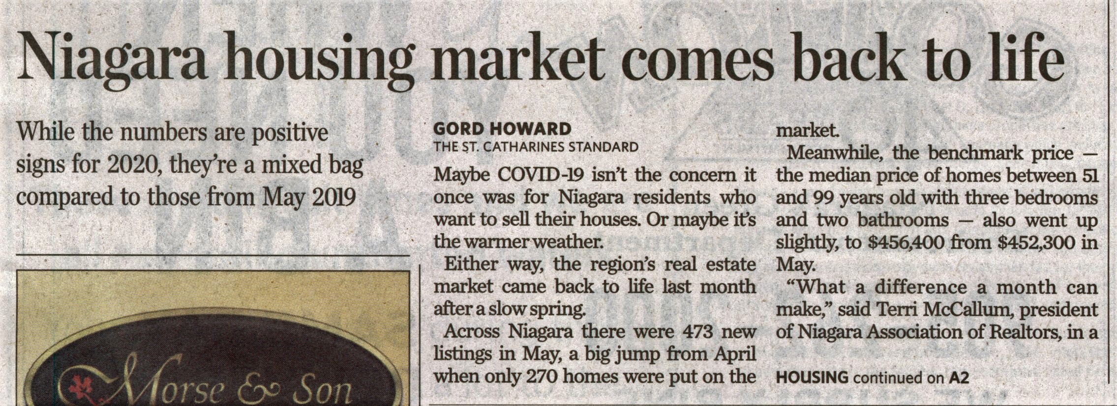 - Niagara housing market comes back to life : While the numbers are positive signs for 2020, they're a mixed bag compared to those from May 2019