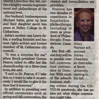 New Brock chancellor has long -standing ties to Niagara : Hilary Pearson brings desire to mentor young women to new role