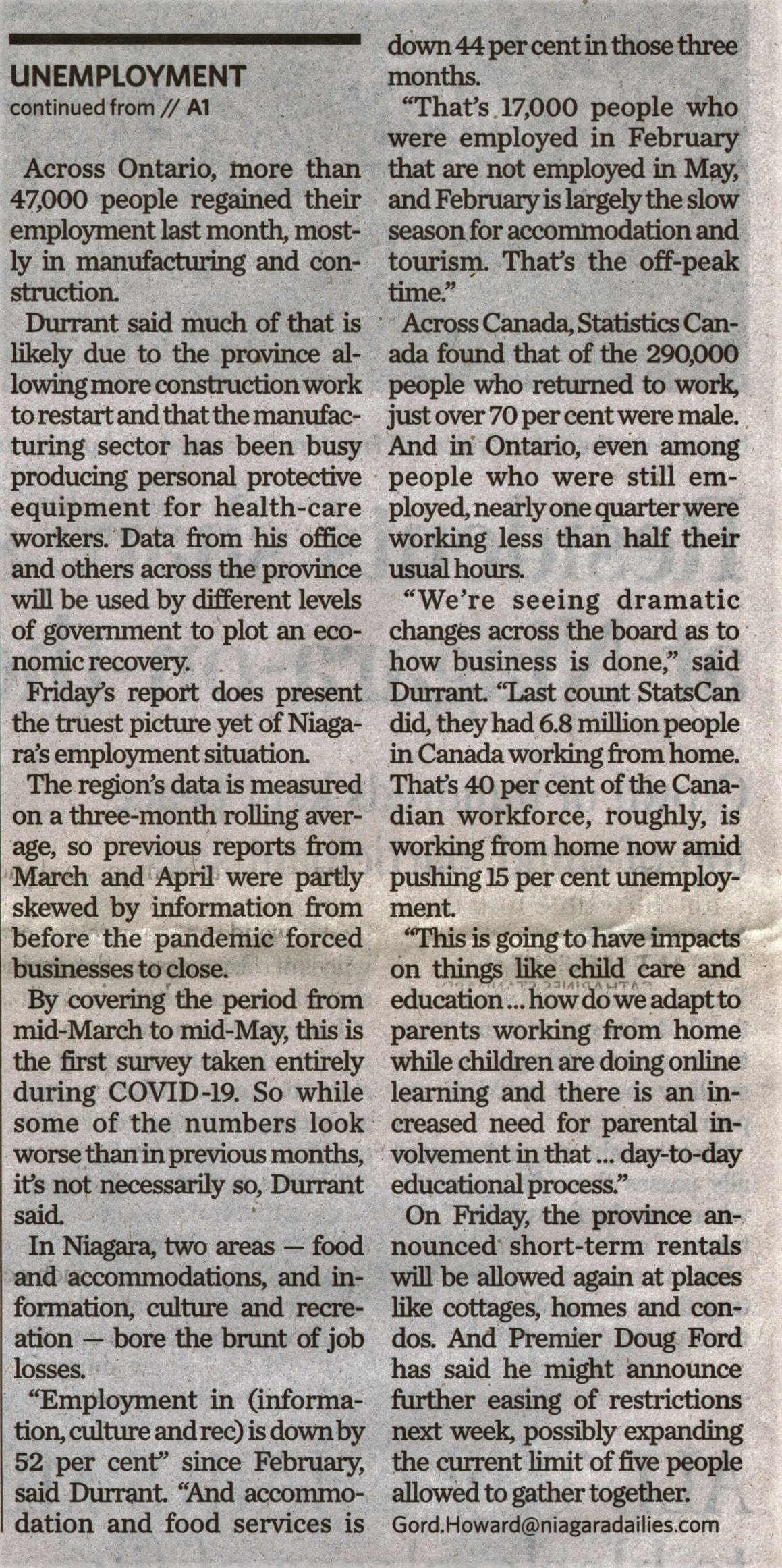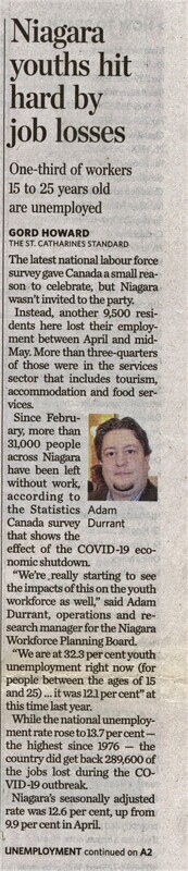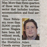 - COVID-19 pandemic / Durrant, Adam / Niagara Workforce Planning Board / tourism / unemployment