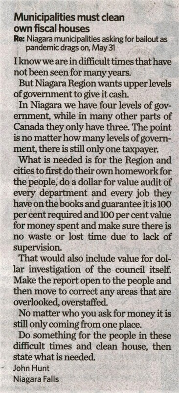 Municipalities must clean own fiscal houses : Niagara municipalities asking for bailout as pandemic drags on