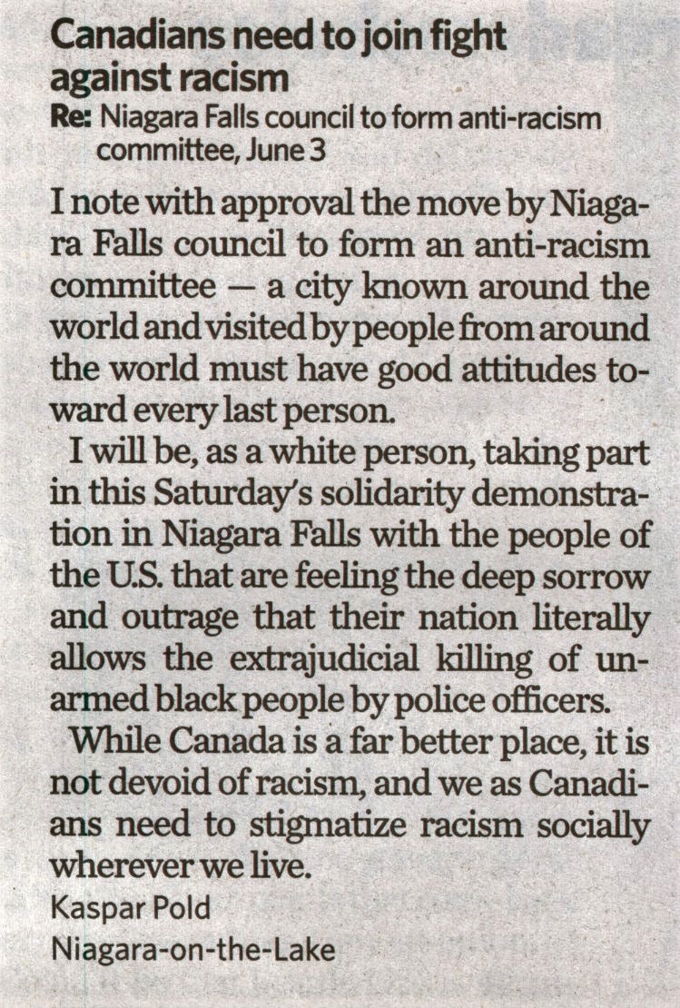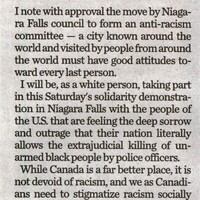 - Canadians need to join fight against racism : Re: Niagara Falls council to form anti-racism committee, June 3