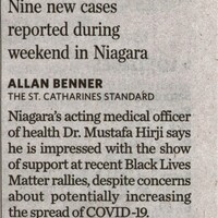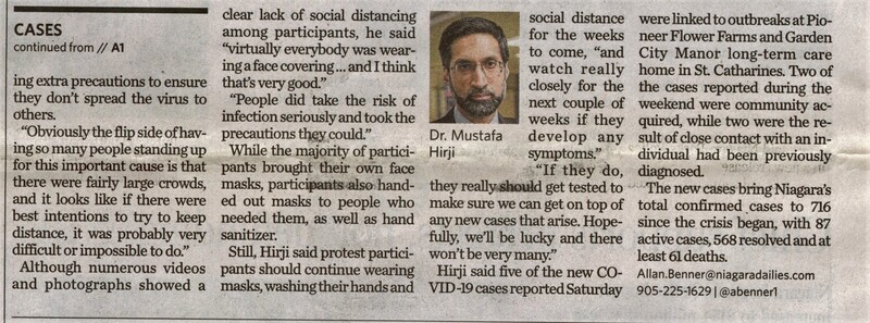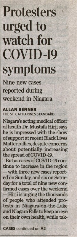 - Protesters urged to watch for COVID-19 symptoms : Nine new cases reported during weekind in Niagara