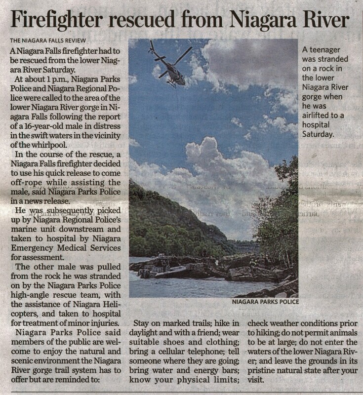 - Niagara Parks Police / Niagara Regional Police / teenager rescued / Niagara River