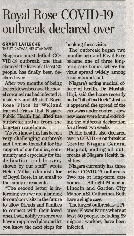 - Royal Rose COVID-19 outbreak declared over