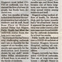 - COVID-19 pandemic / Niagara Public Health / Hirji, Mustafa Dr. / long-term-care facilities