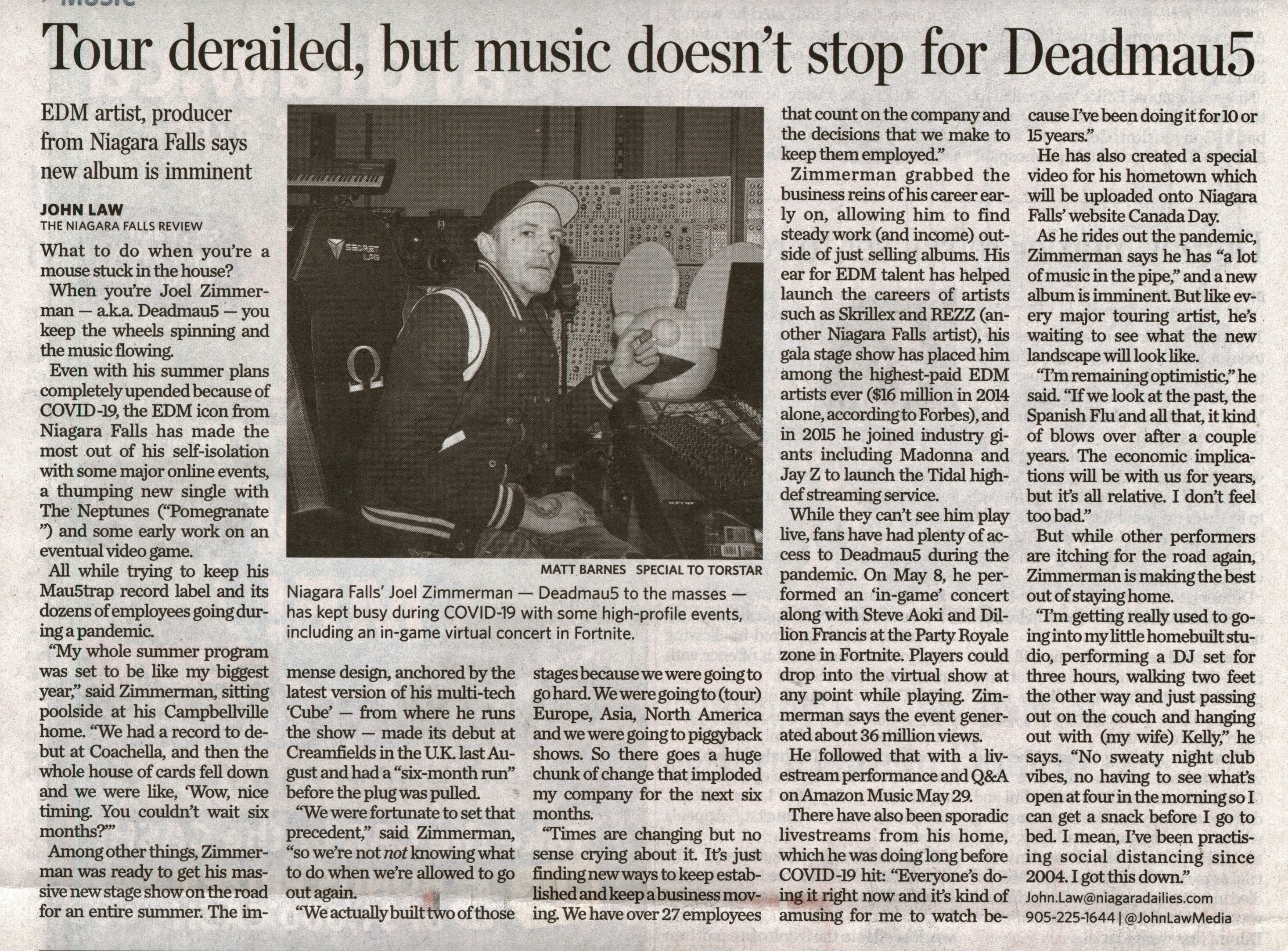 - Tour derailed, but music doesn't stop for Deadmau5 : EDM artist, producer from Niagara Falls says new album is imminent