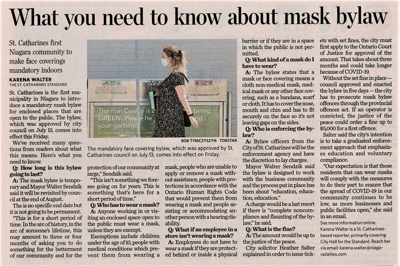 - What you need to know about mask bylaw : St. Catharines first Niagara community to make face coverings mandatory indoors