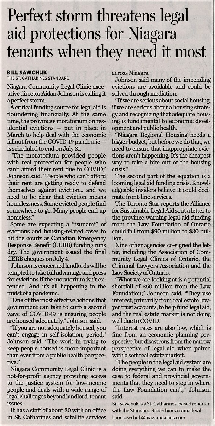 - Perfect storm threatens legal aid protections for Niagara tenants when they need it most