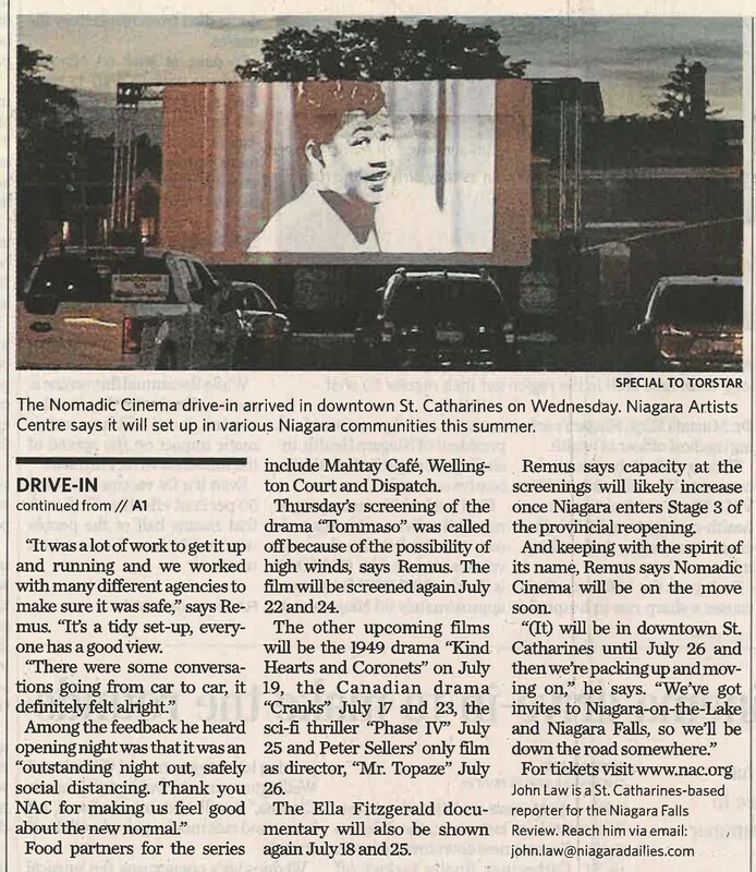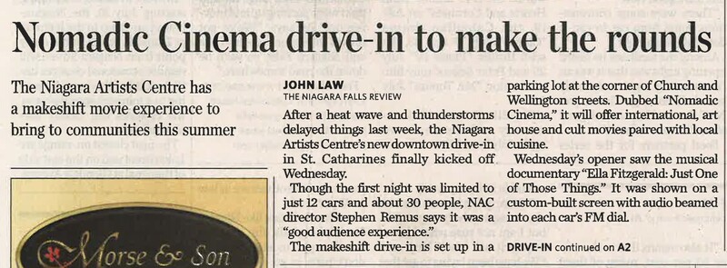 - Nomadic Cinema drive-in to make the rounds : the Niagara Artists Centre has a makeshift movie experience to bring to communities this summer