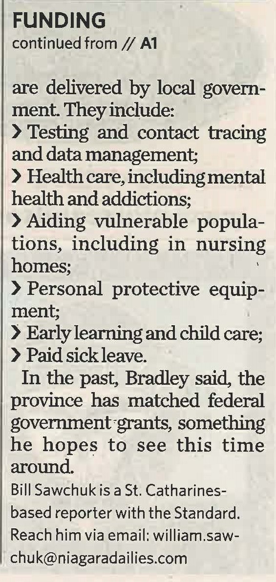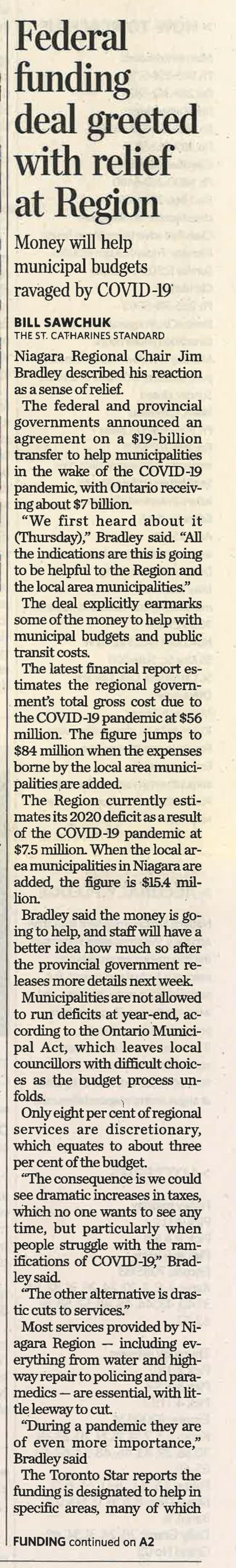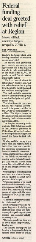 - Federal funding deal greeted with relief at Region : money will help municipal budgets ravaged by COVID-19
