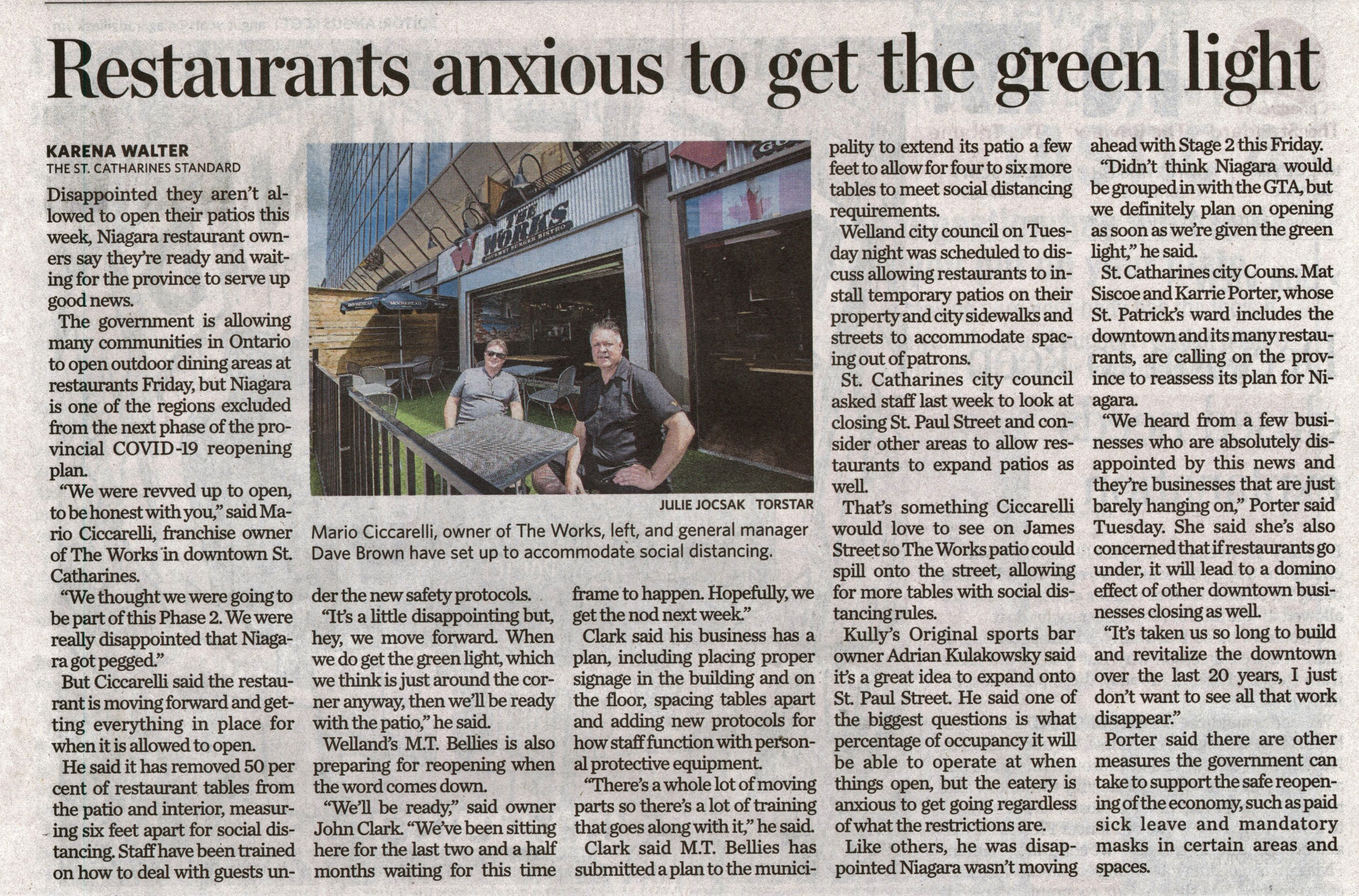 - Restaurants anxious to get the green light