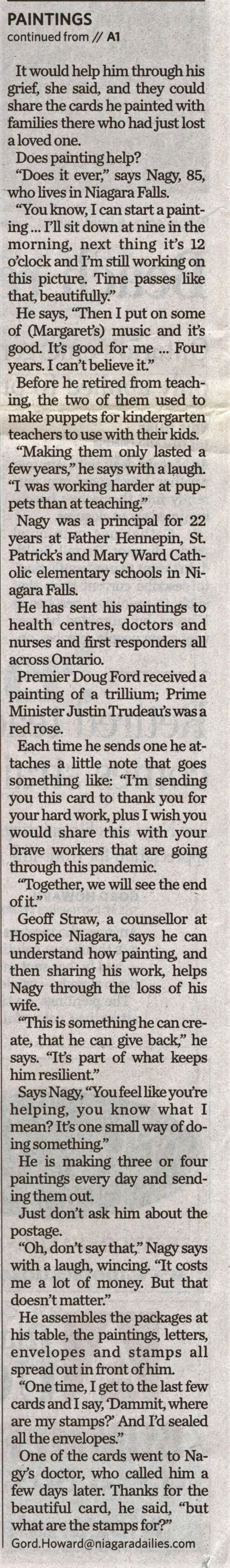 - Retired teacher's thank you comes straight from the art : Ray Nagy uses his paintings to show appreciation for front-line workers