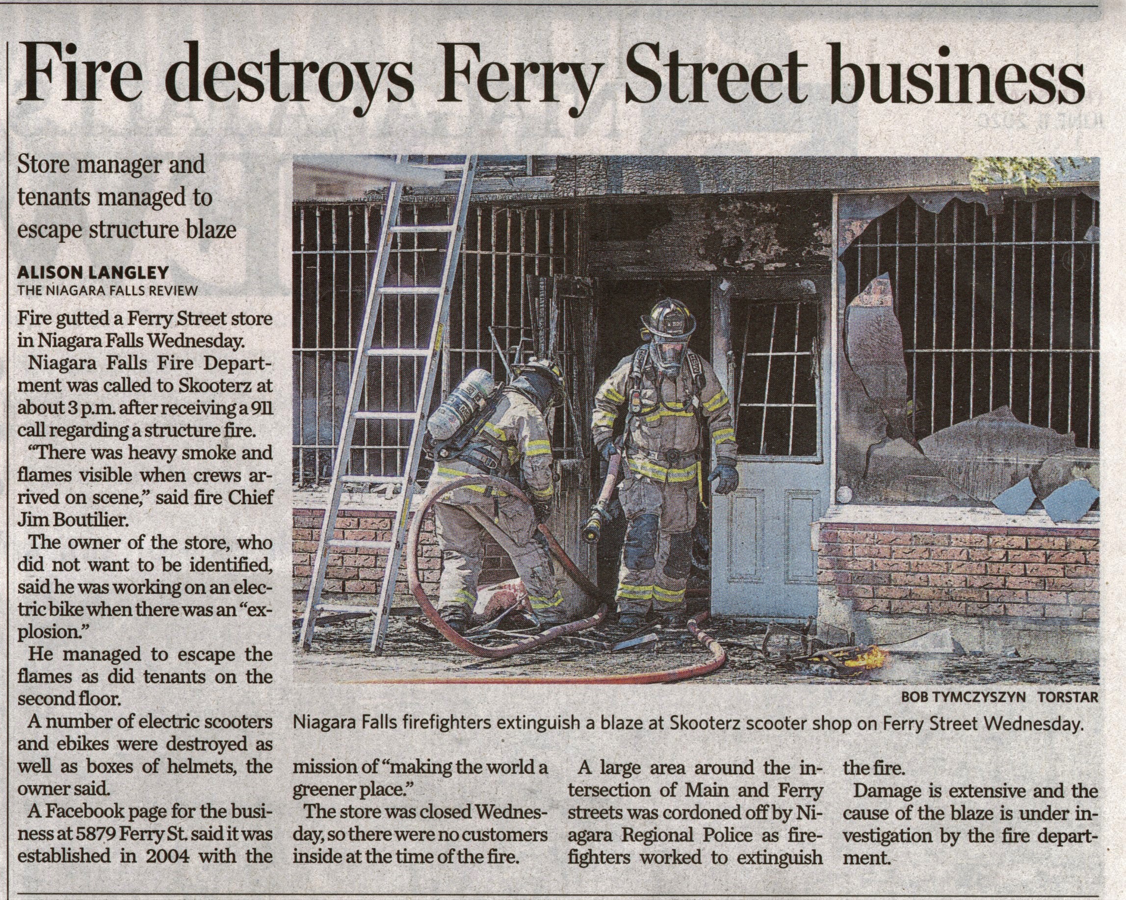 - Skooterz / scooter shop / Ferry Street / extensive fire damage