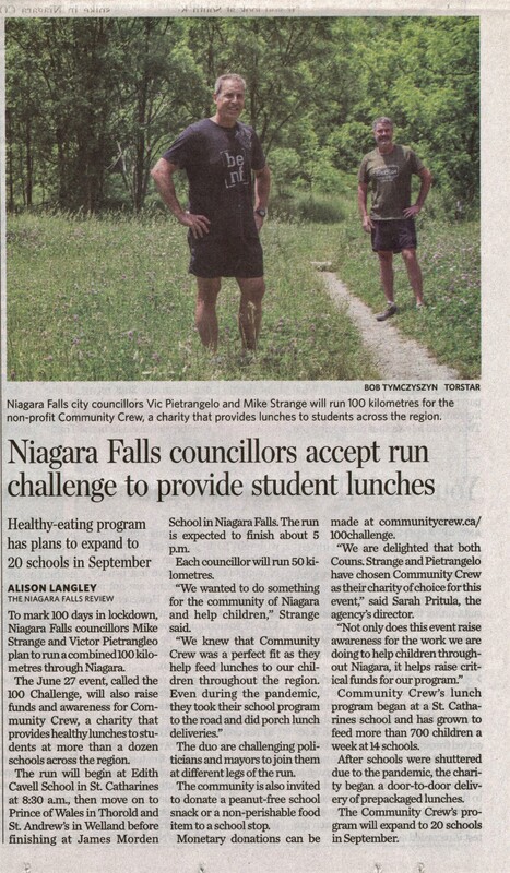 - Niagara Falls councillors accept run challenge to provide student lunches : Healthy-eating program has plans to expand to 20 schools in September