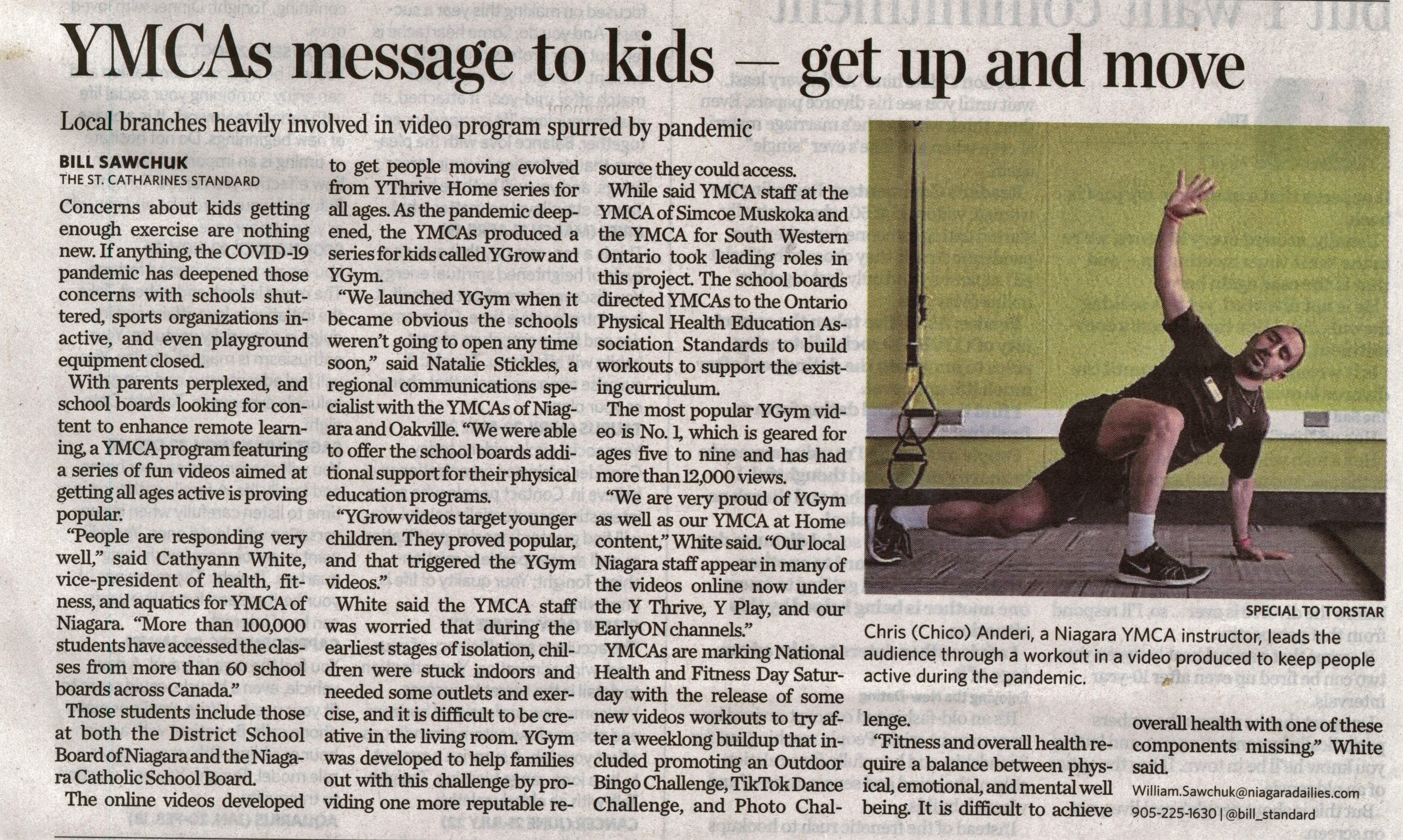 - YMCA message to kids ---get up and move : Local branches heavily involved in video program spurred by pandemic