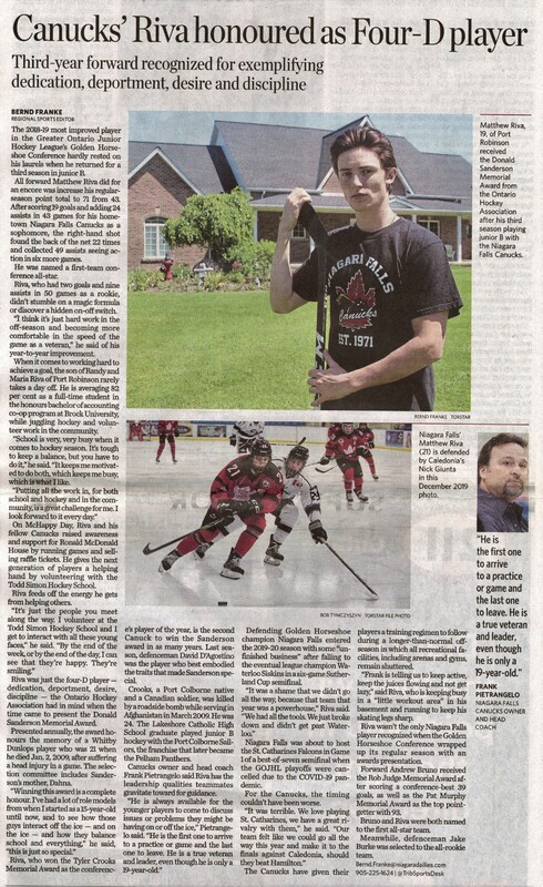 - Riva, Matthew / Greater Ontario Junior Hockey League / Niagara Falls Canucks / COVID-19 pandemic