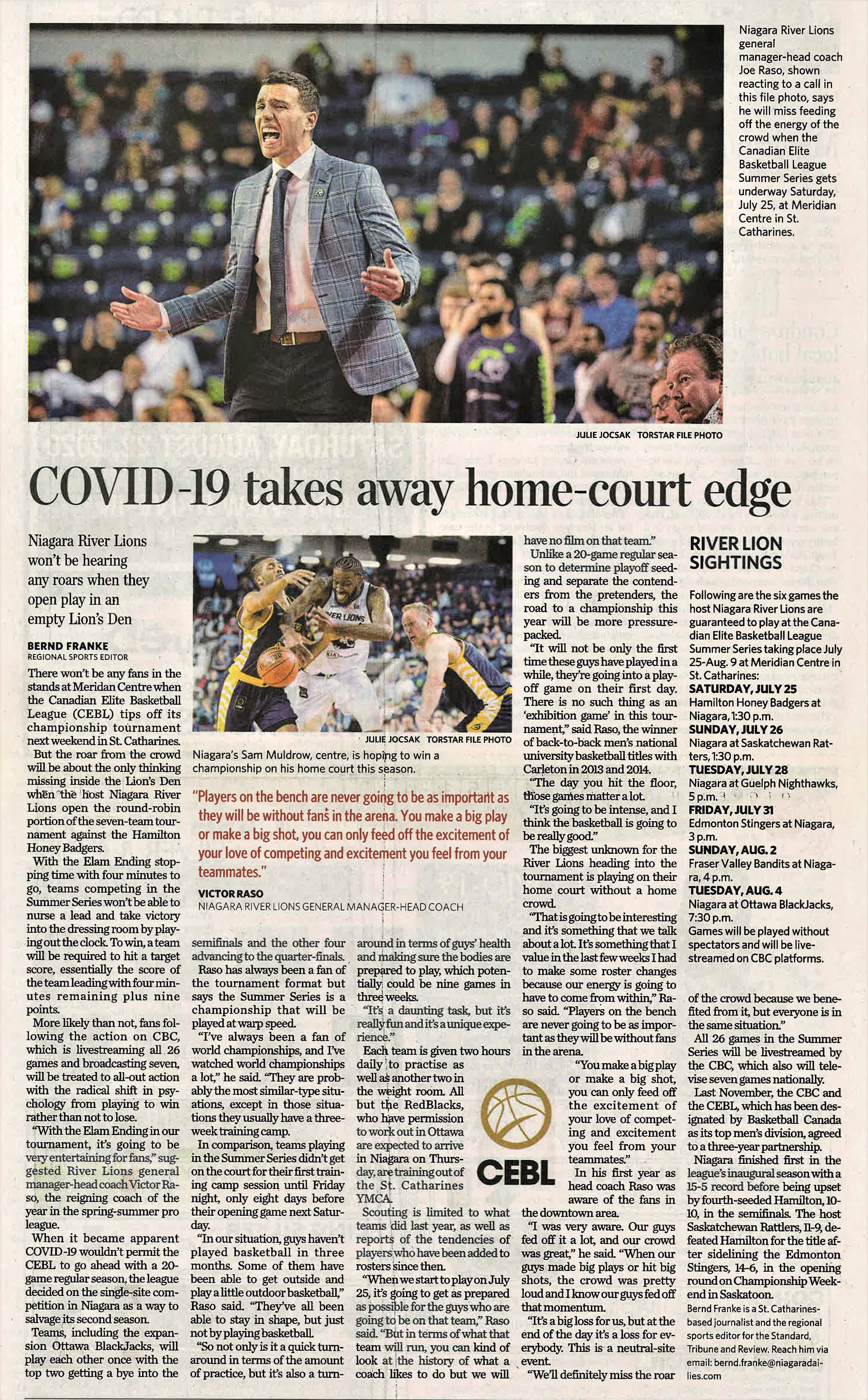COVID-19 takes away home-court edge : Niagara River Lions won't be hearing any roars when they open play in an empty Lion's Den