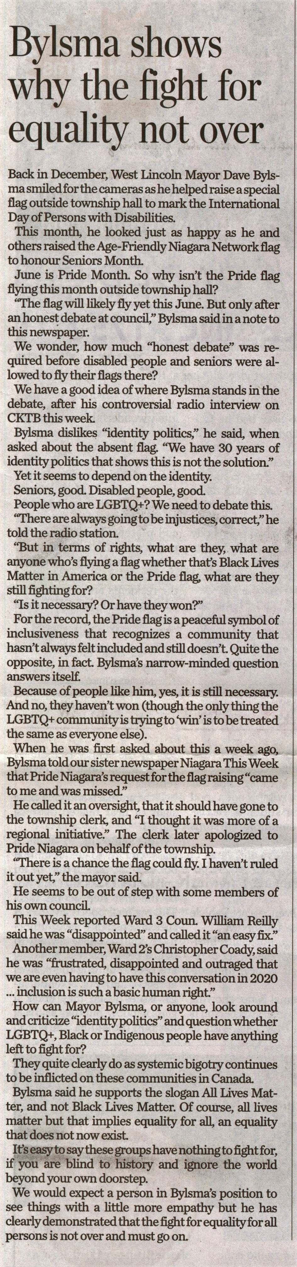 - Bylsma, Dave (Mayor) / radio interview / Pride Niagara / Indigenous People