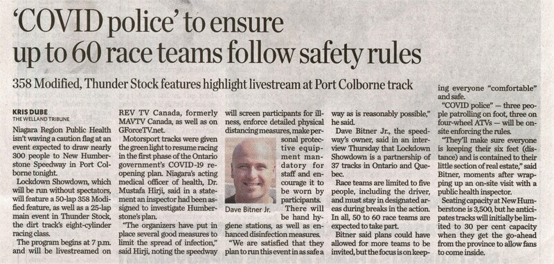 - Niagara Region Public Health / New Humberstone Speedway / Lockdown Showdown / COVID-19 pandemic / Hirji, Mustafa Dr. / Bitner Jr., Dave / livestream