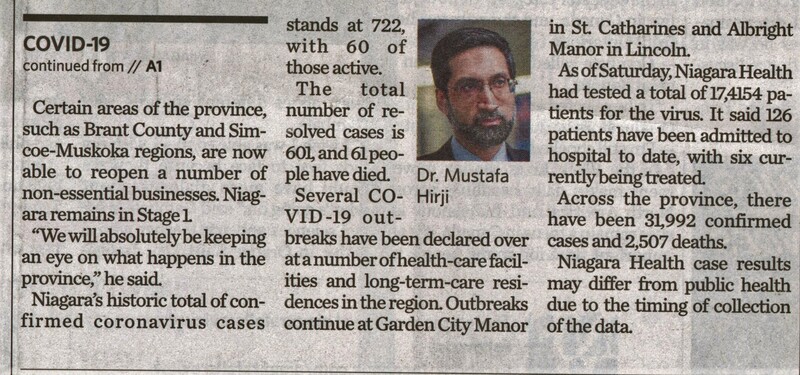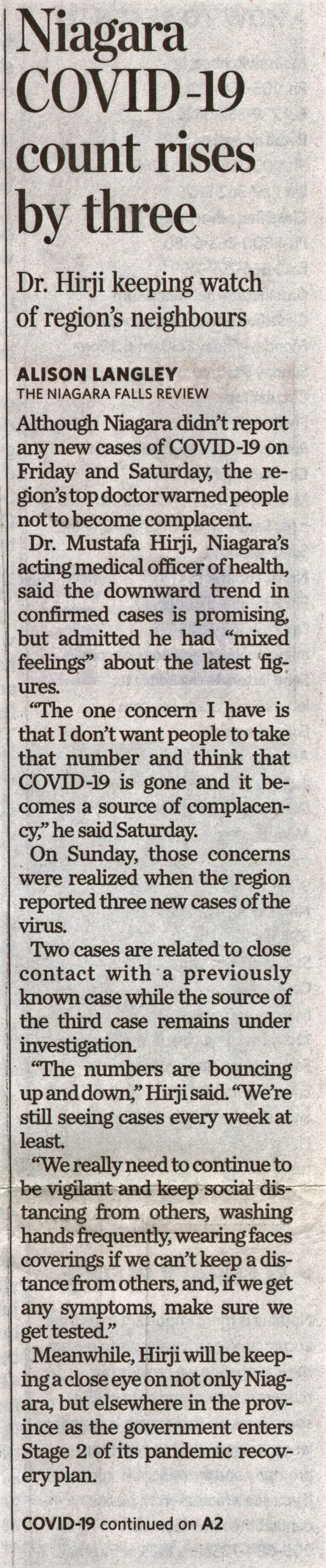 - Niagara COVID-19 count rises by three : Dr. Hirji keeping watch of region's neighbours