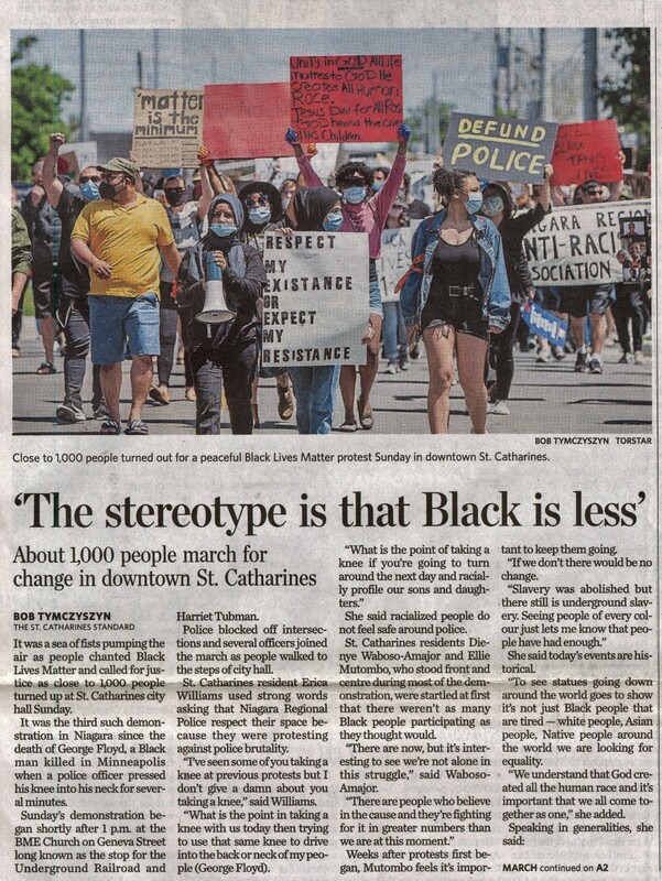- 'The stereotype is that Black is less' : About 1,000 people march for change in downtown St. Catharines