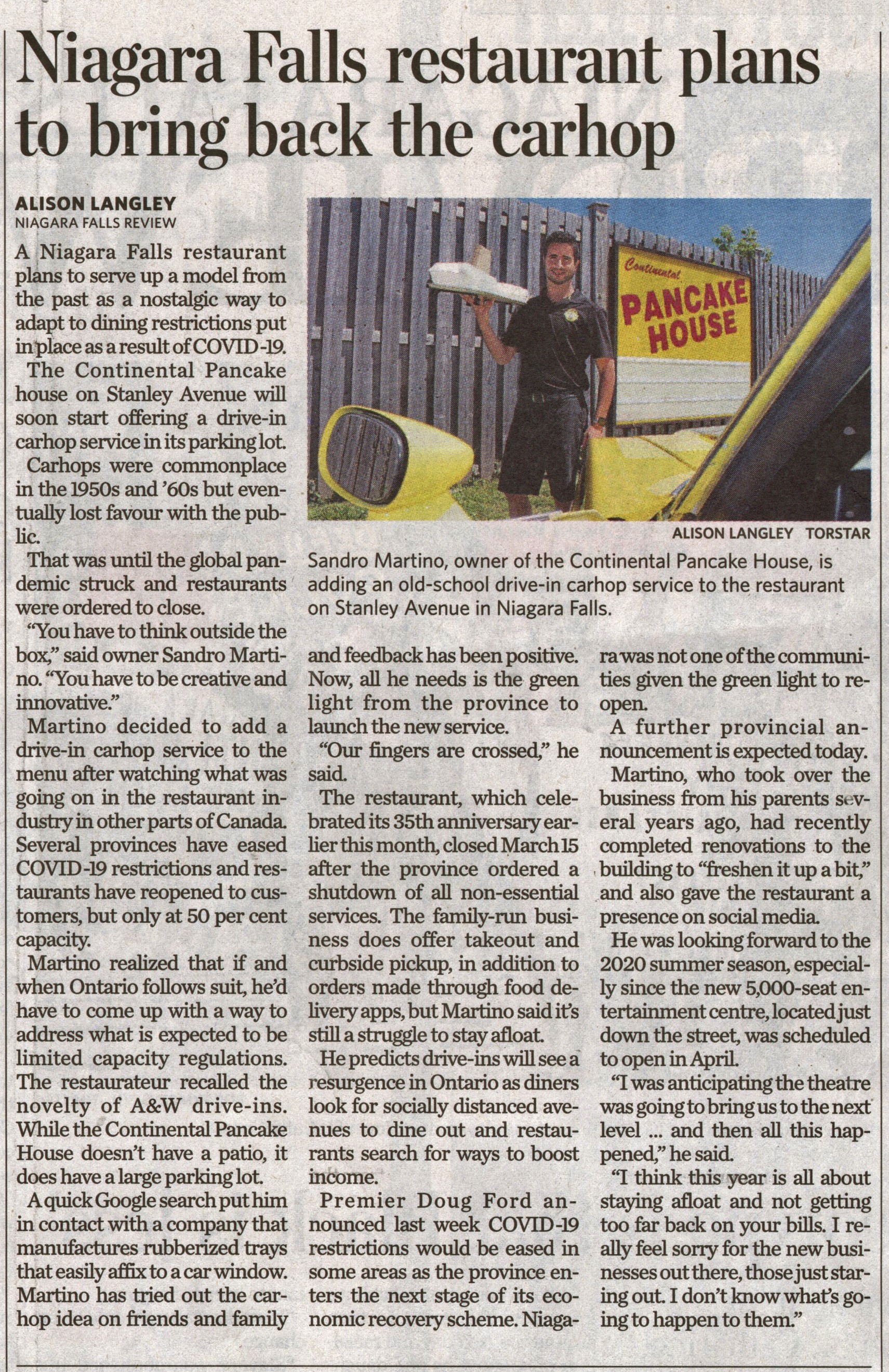 - The Continental Pancake / Martino, Sandro / COVID-19 pandemic / drive-in carhop