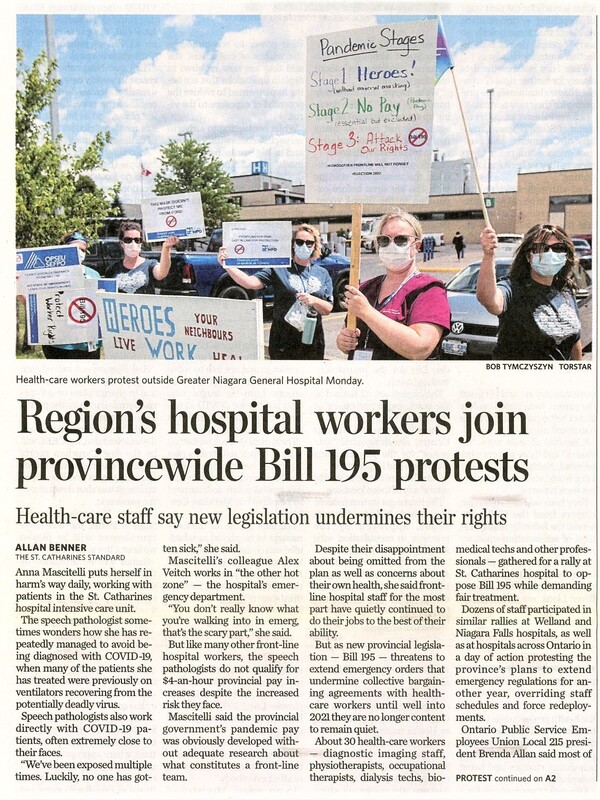 - Region's hospital workers join provincewide Bill 195 protests : health-care staff say new legislation undermines their rights