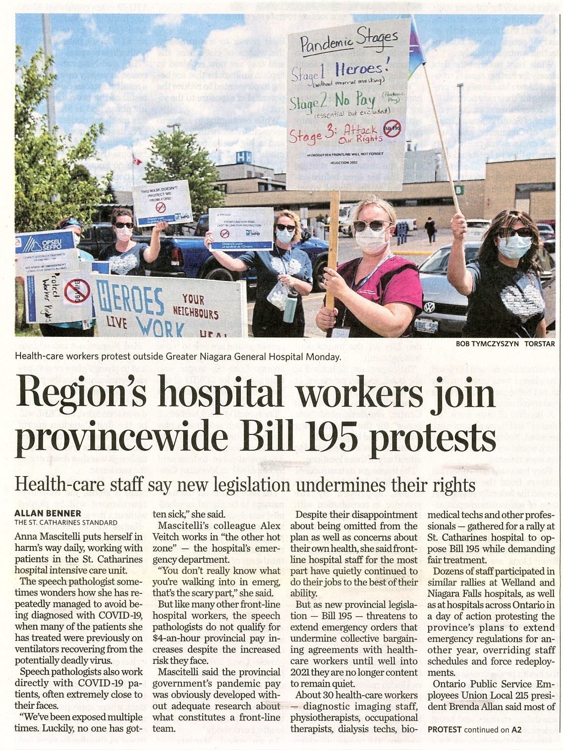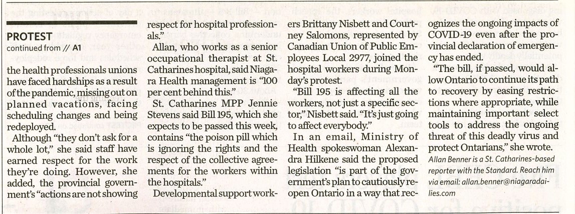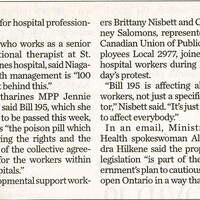 Region's hospital workers join provincewide Bill 195 protests : health-care staff say new legislation undermines their rights