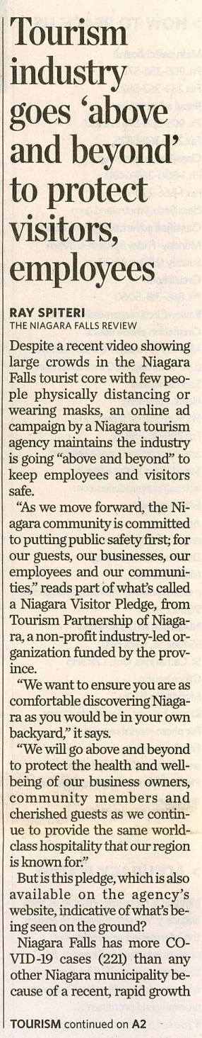 - COVID-19 pandemic / tourism / Tourism Partnership of Niagara / Niagara Visitor Pledge