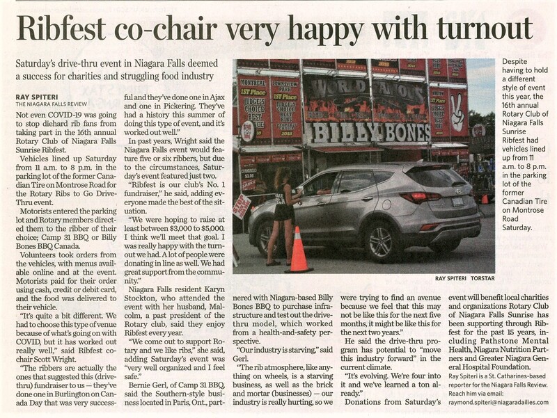 COVID-19 pandemic / Rotary Club of Niagara Falls Sunrise / Ribfest / Camp 31 BBQ / Billy Bones BBQ Canada / Wright, Scott