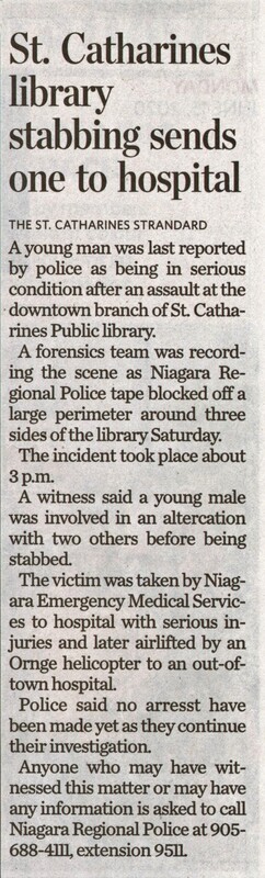 - St. Catharines Public Library / Niagara Emergency Medical Services / stabbing