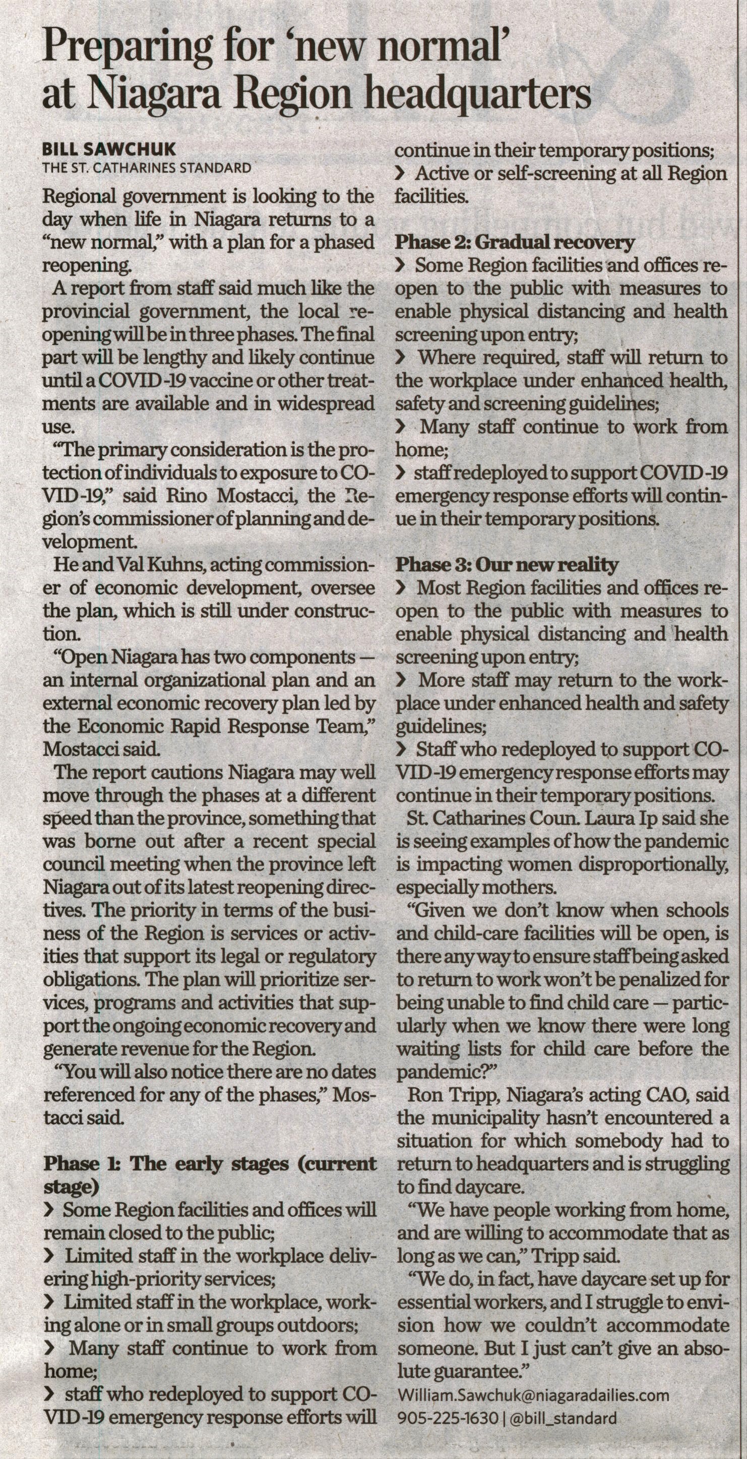 - Preparing for 'new normal' at Niagara Region headquarters