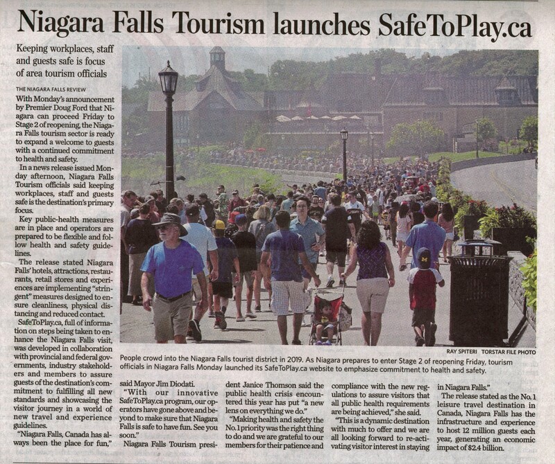 - Niagara Falls Tourism launches SafeToPlay.ca : Keeping workplaces, staff and guests safe is focus of area tourism officials