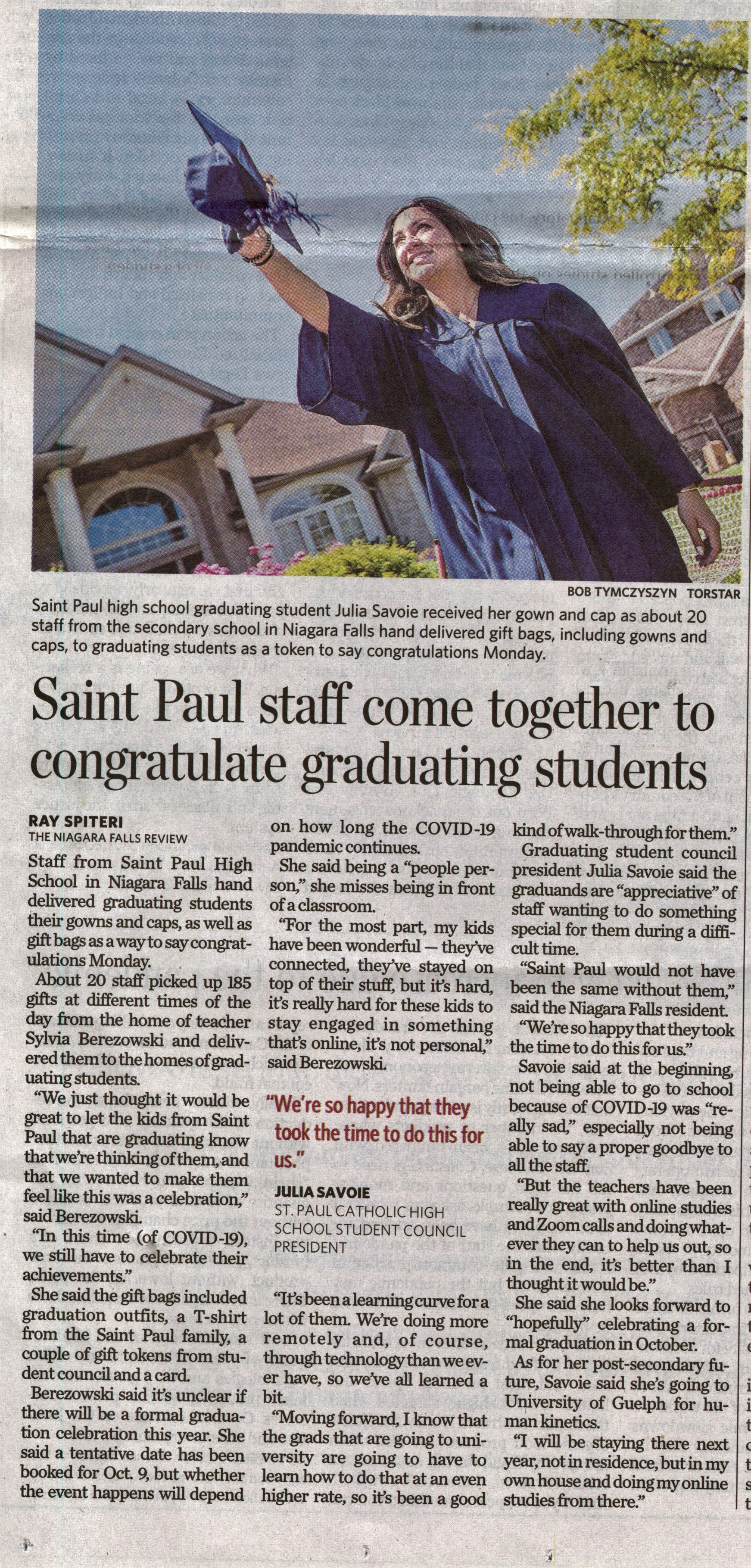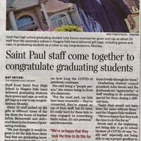 - Savoie, Julie / Berezowski, Sylvia / St. Paul High School / COVID-19 pandemic / staff / house deliveries / graduating students
