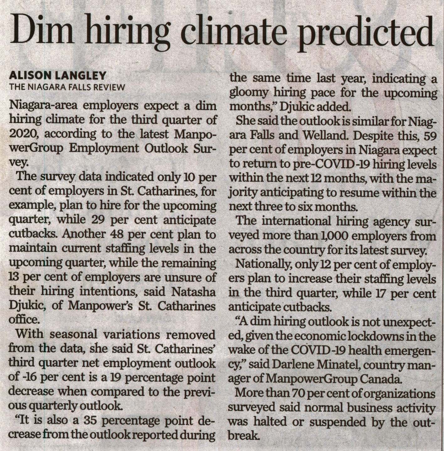 - ManpowerGroup Employment Outlook Survey / COVID-19 pandemic Djukic, Natasha / gloomy outlook