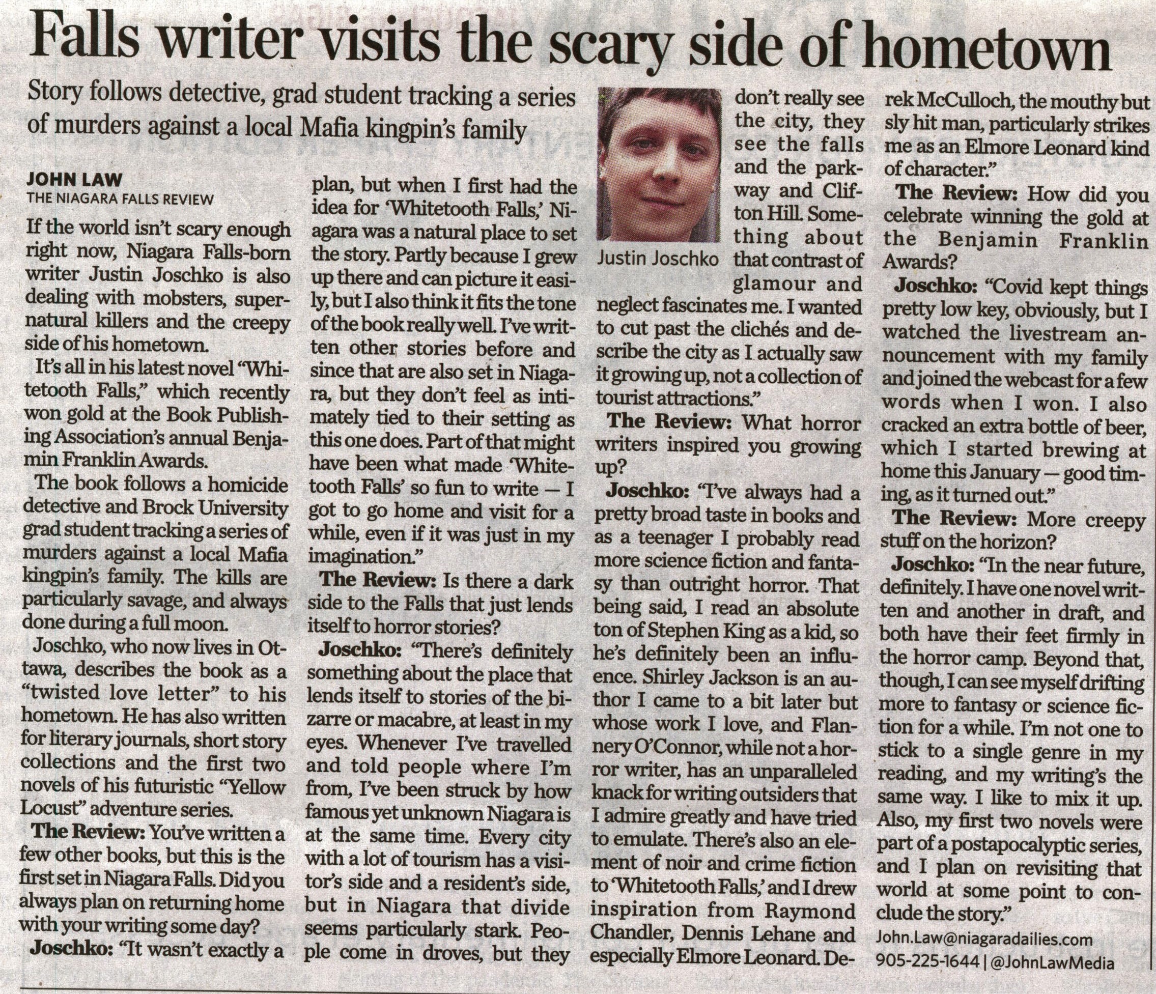 - Falls writer visits the scary side of hometown : Story follows detective, grad student tracking a series of murders against a local Mafia kingpin's family