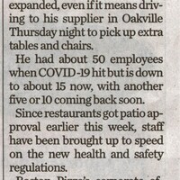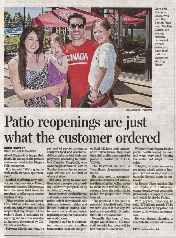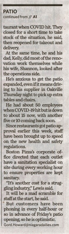 - Lewis, Gord & Shannon / Boston Pizza / Zappitelli, Albert / Zappis Pizza and Pasta / patio service / COVID-19 pandemic