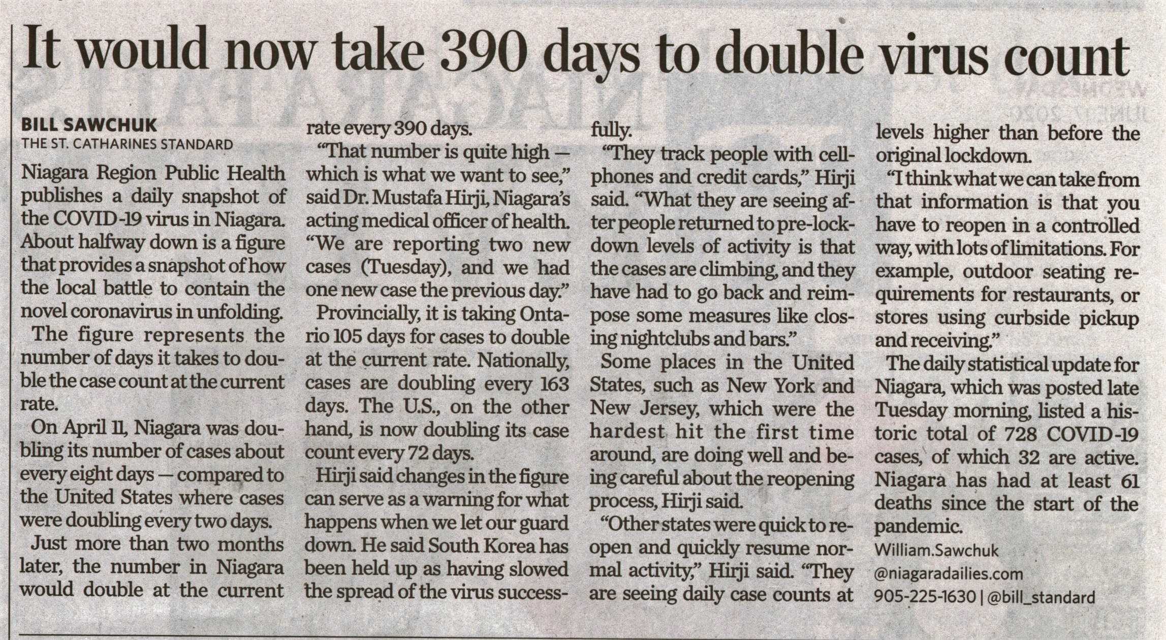 - Niagara Region Public Health / COVID-19 pandemic / Hirji, Mustafa Dr.