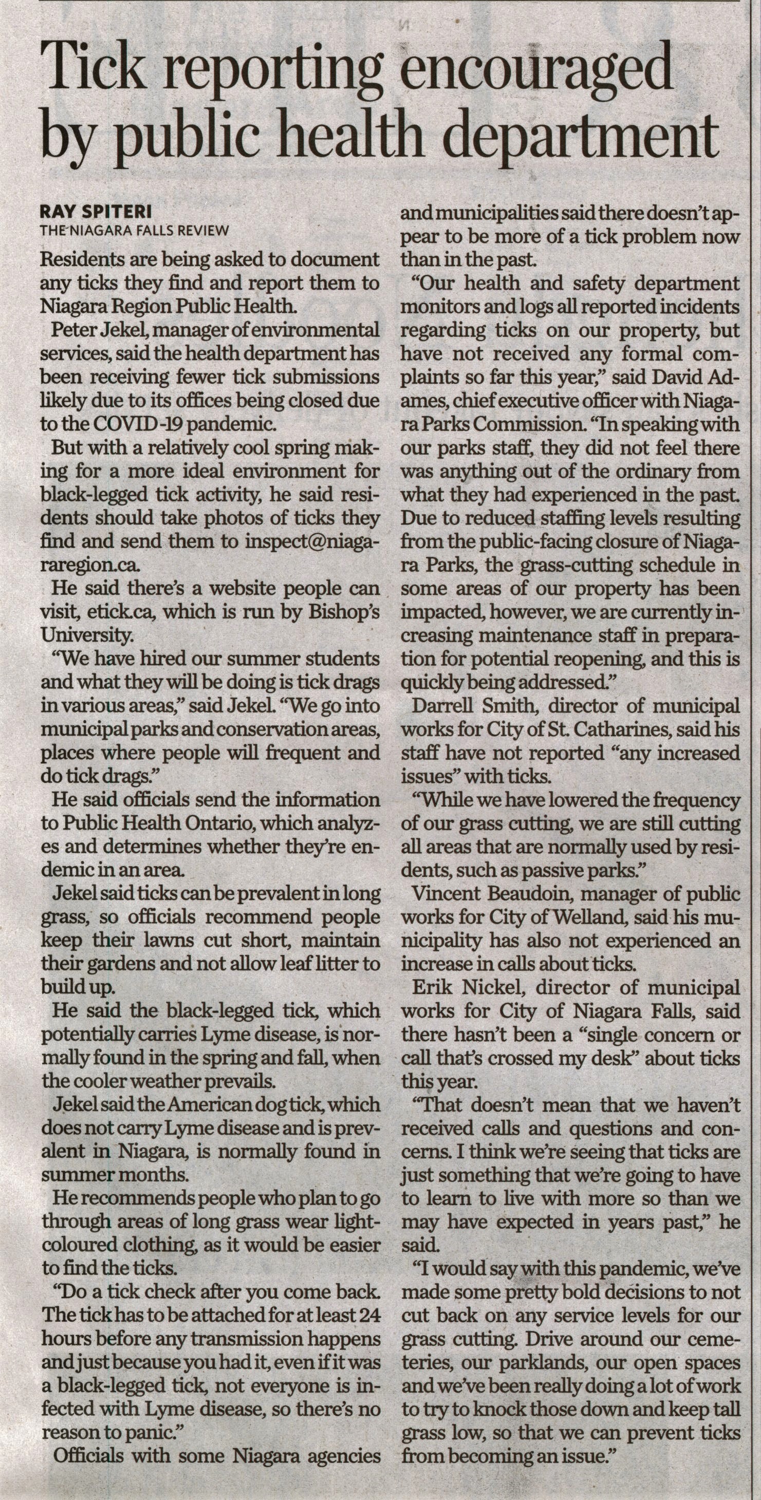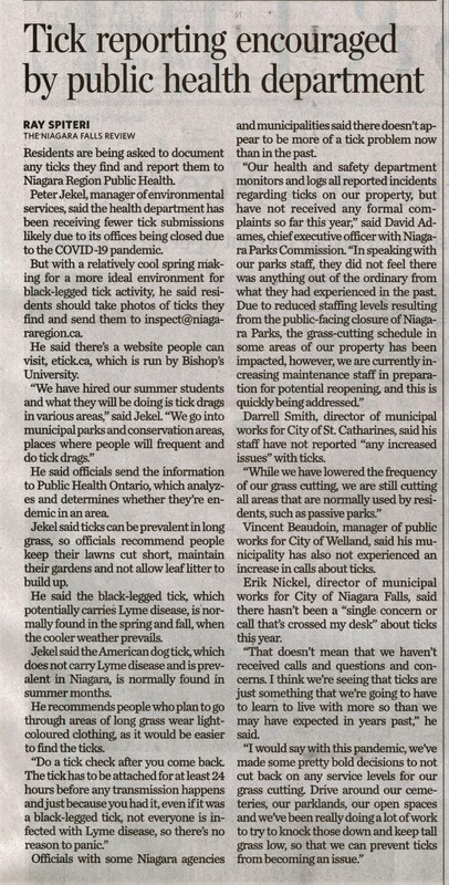 - Niagara Region Public Health / Jekel, Peter / fewer tick submission / Lyme disease / COVID-19 pandemic