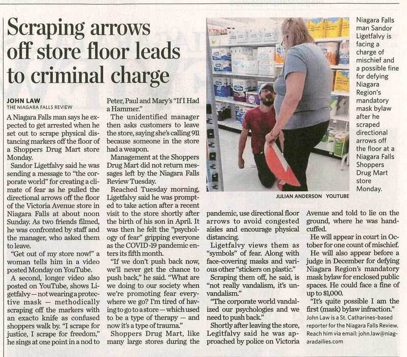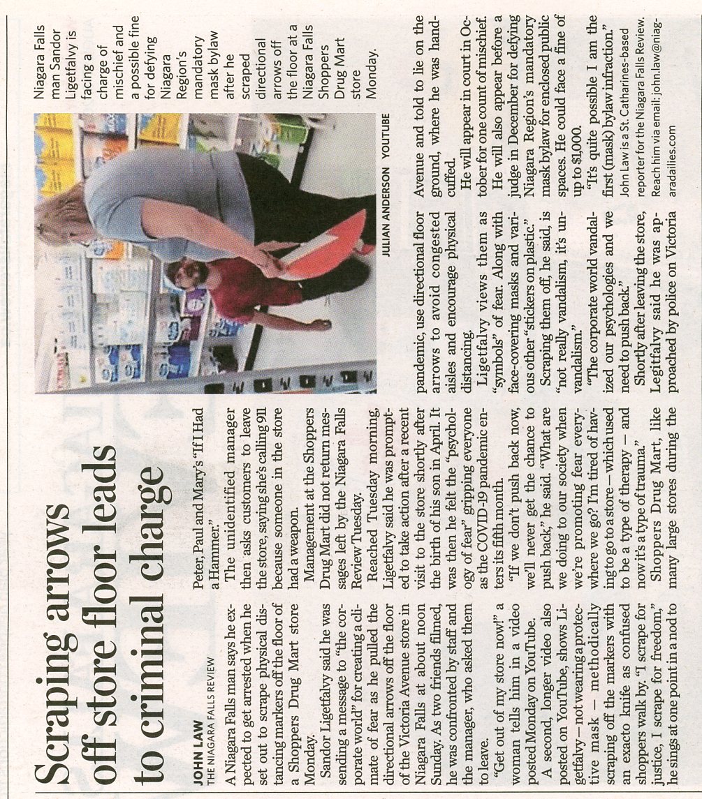 Ligetfalvy, Sandor / Shoppers Drug Mart / Niagara Region mandatory mask bylaw / COVID-19 pandemic
