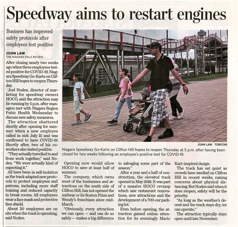 - Niagara Speedway Go-Karts / Clifton Hill / COVID-19 pandemic / HOCO / Niagara Region Public Health / Noden, Joel