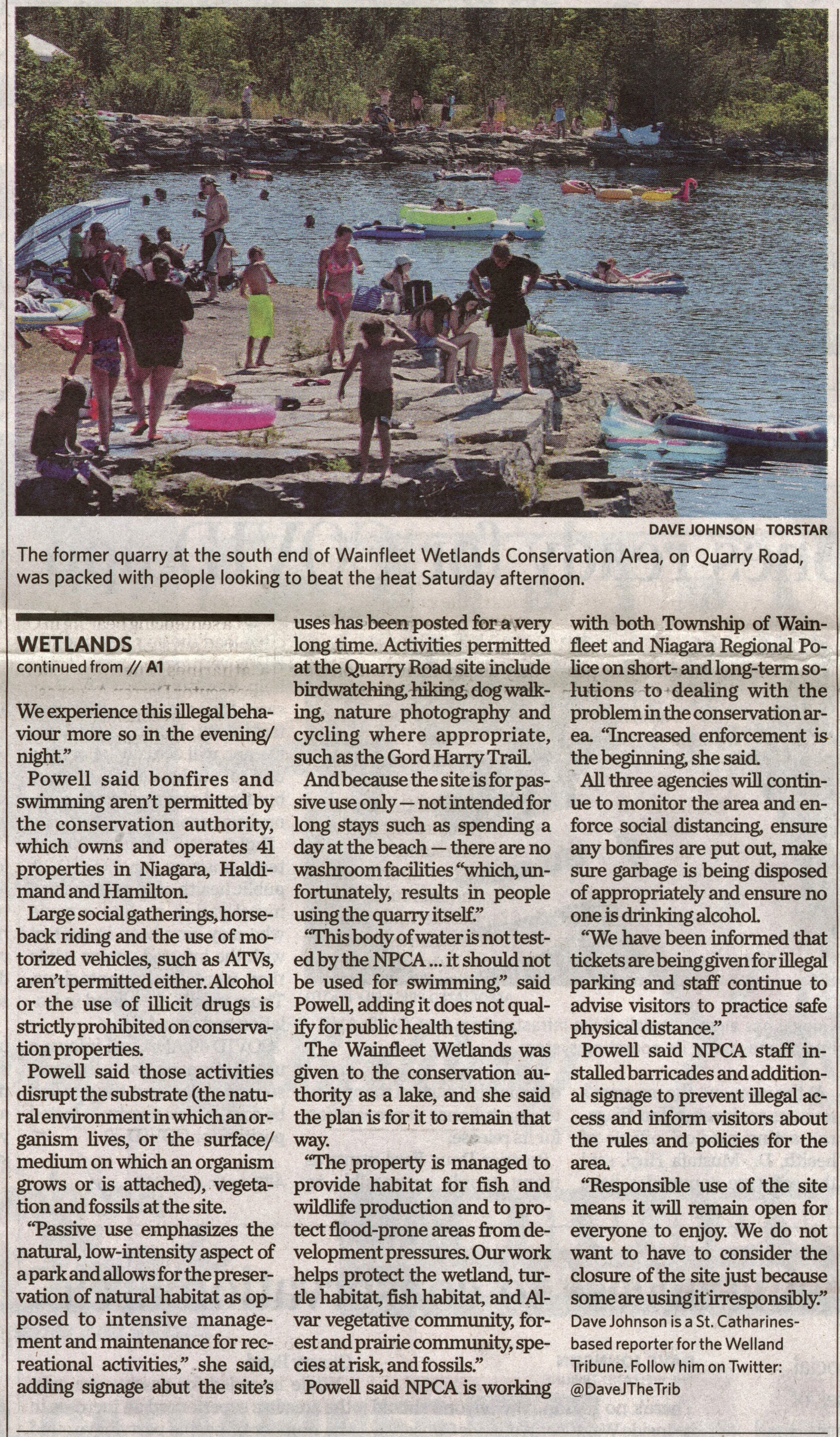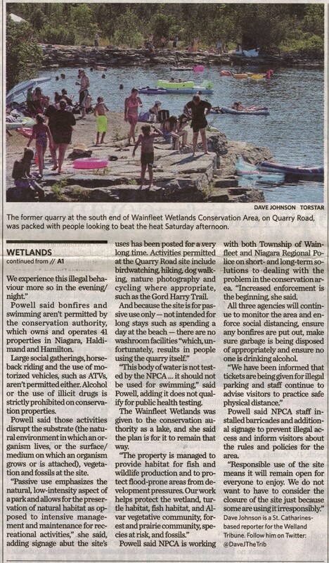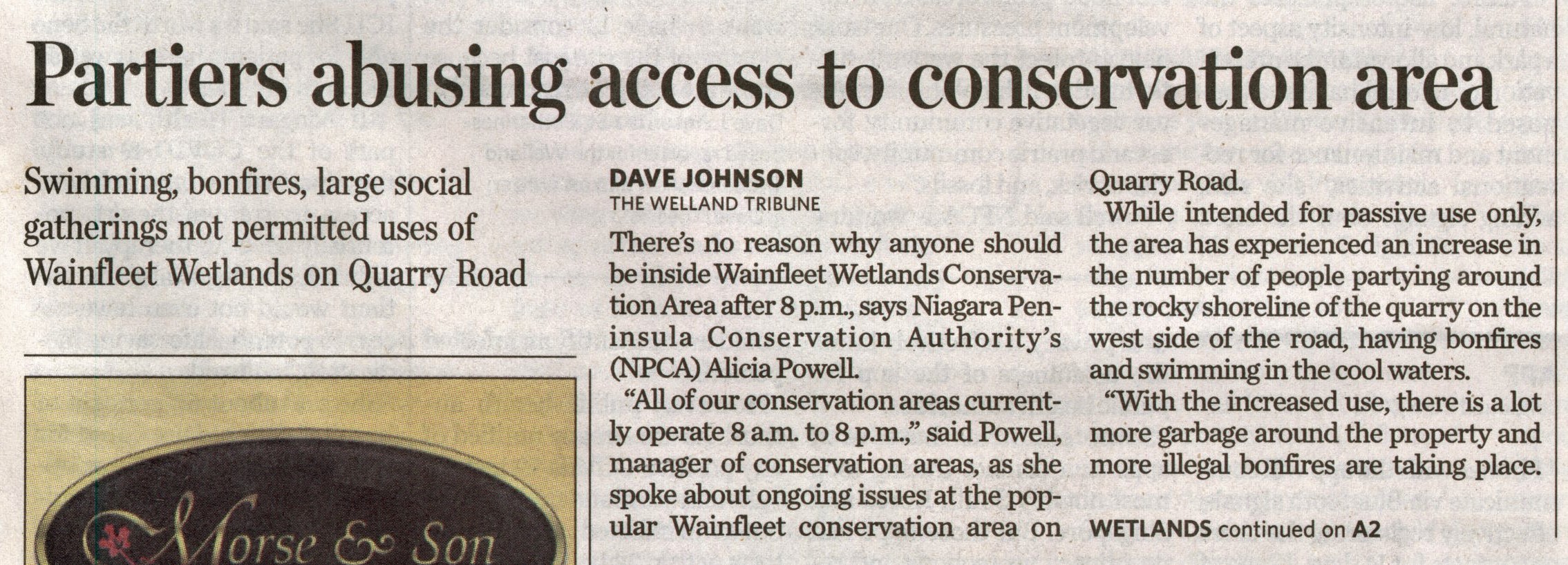 - Partiers abusing access to conservation area : Swimming, bonfires large social gatherings not permitted uses of Wainfleet Wetlands on Quarry Road