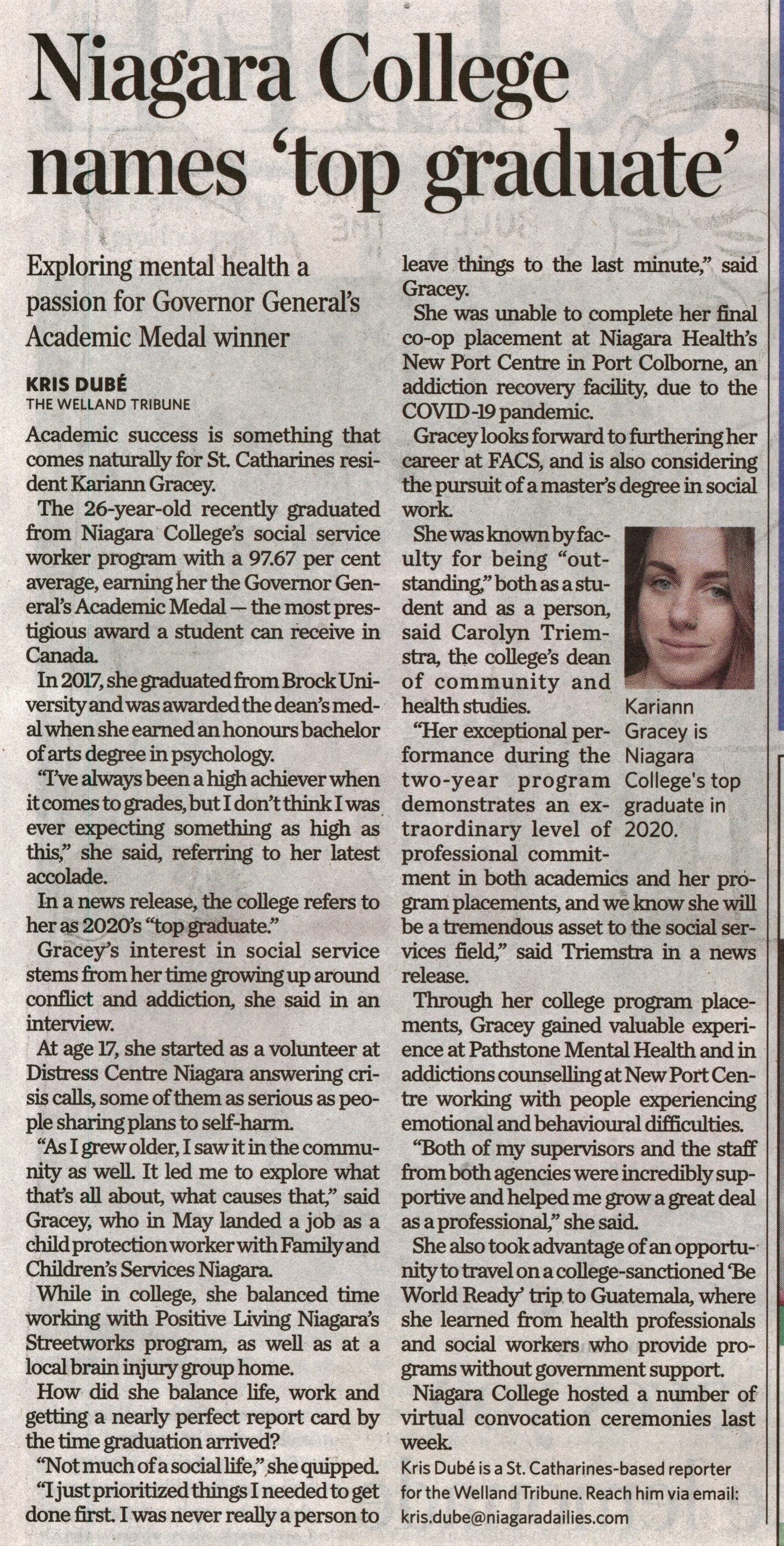 - Niagara College names 'top graduate' : Exploring mental health passion for Governor General's Academic Medal winner