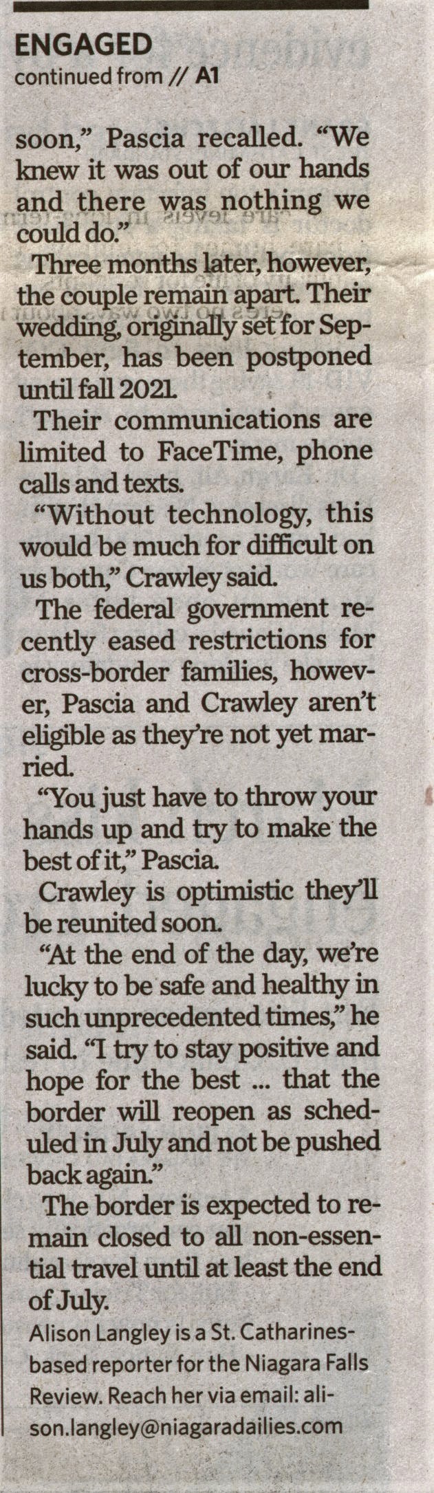 - Pascia, Tricia-Lynn / Crawley, Nick / Canada-U.S. border closed / COVID-19 pandemic