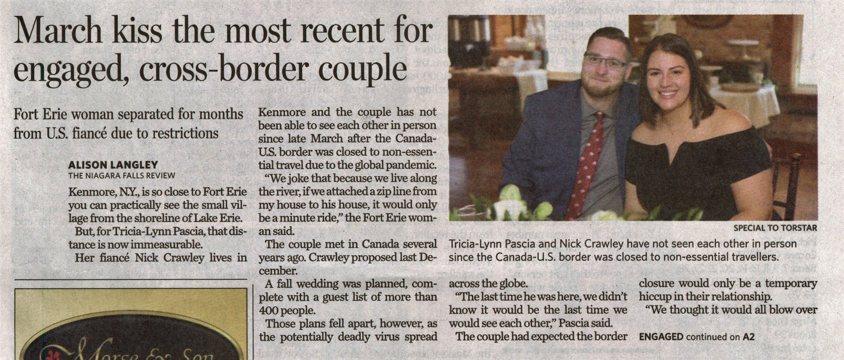 - March kiss the most recent for engaged, cross-border couple : Fort Erie woman separated for months from U.S. fiance due to restrictions