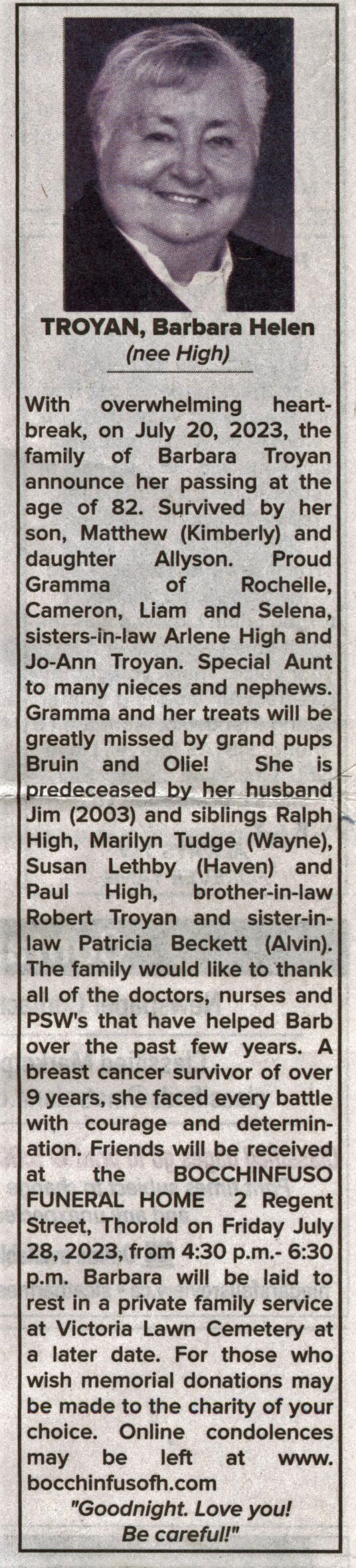 Troyan, Barbara Helen (nee High)
