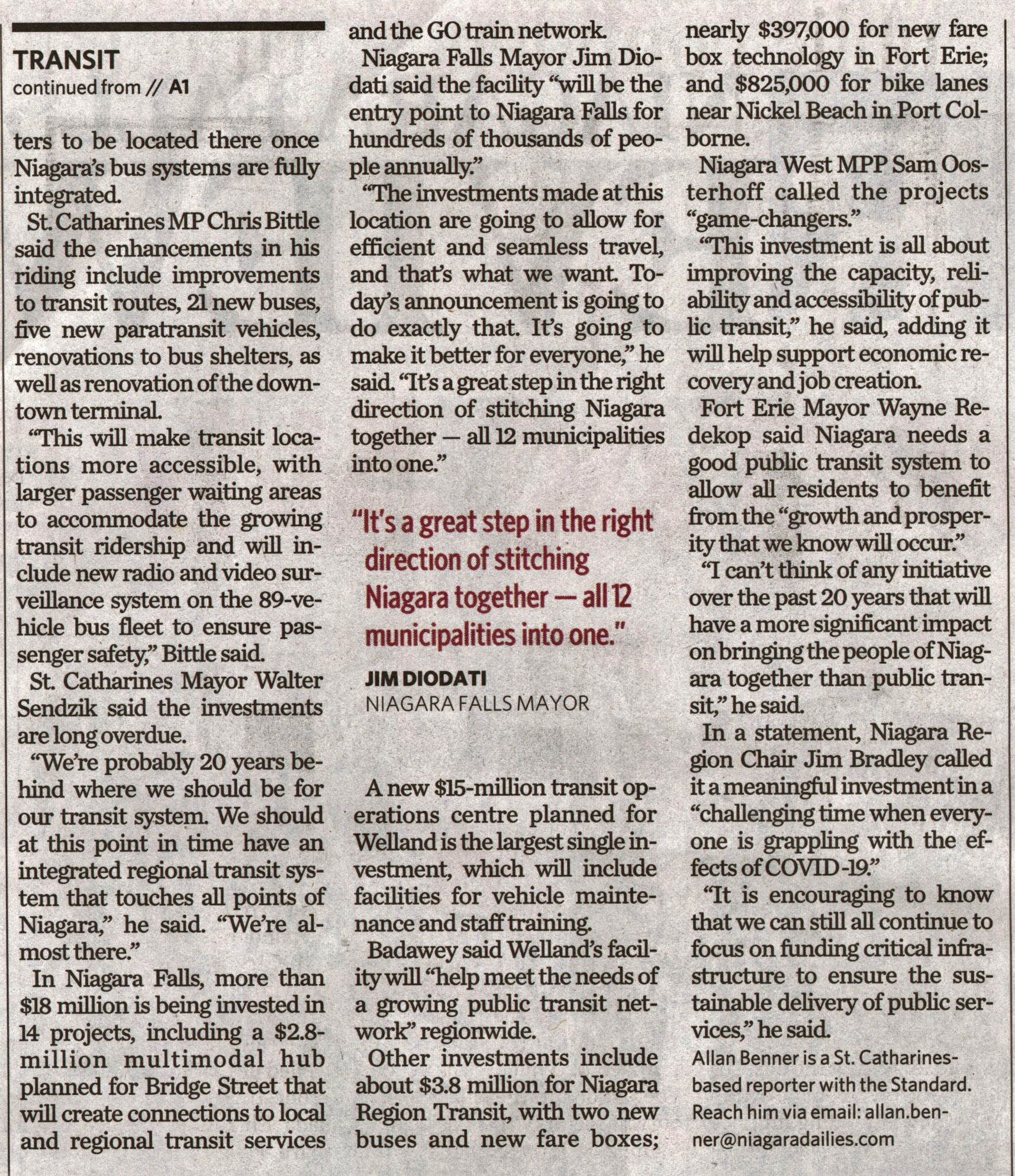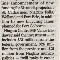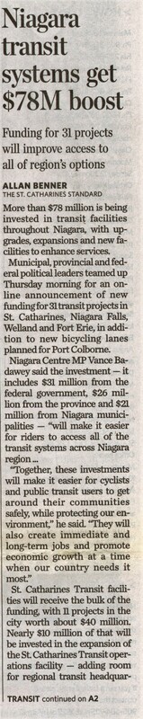 - Niagara transit systems get $78M boost : Funding for 31 projects will improve access to all of region's options
