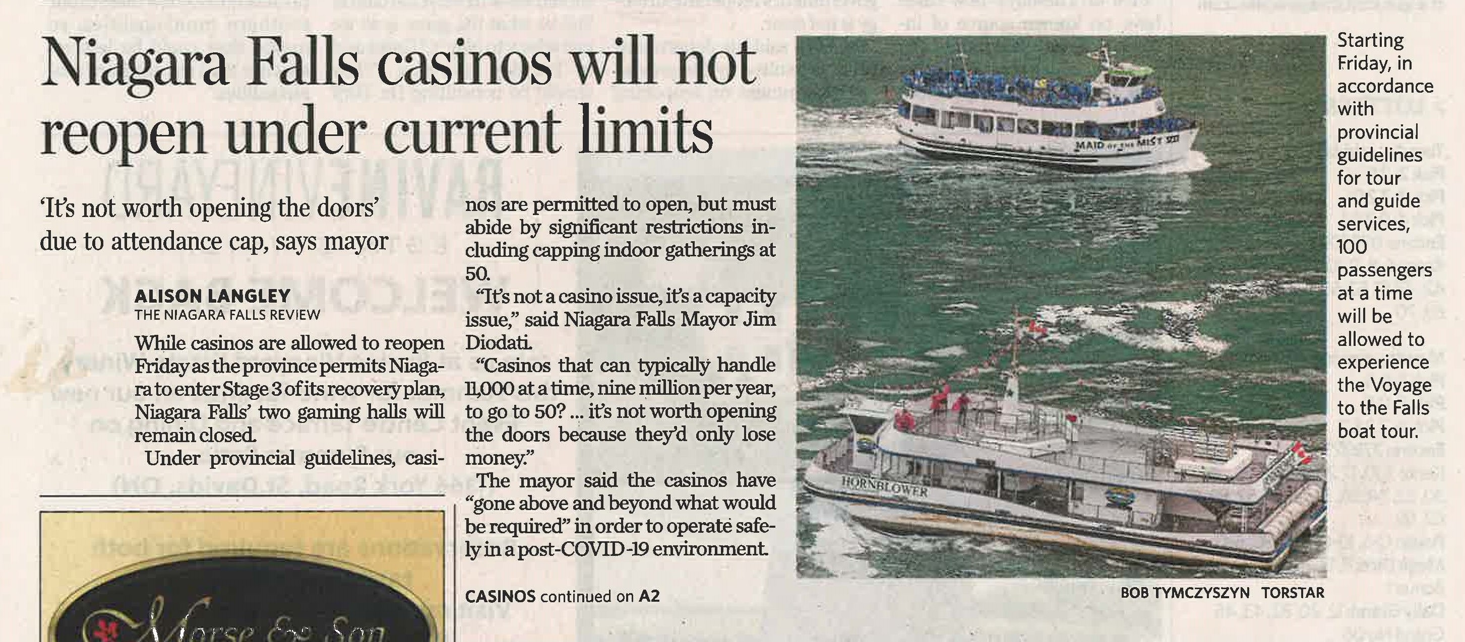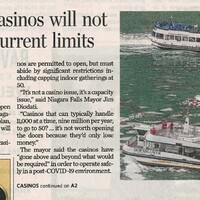 Niagara Falls casinos will not reopen under current limits : it's not worth opening the doors due to attendance cap, says mayor