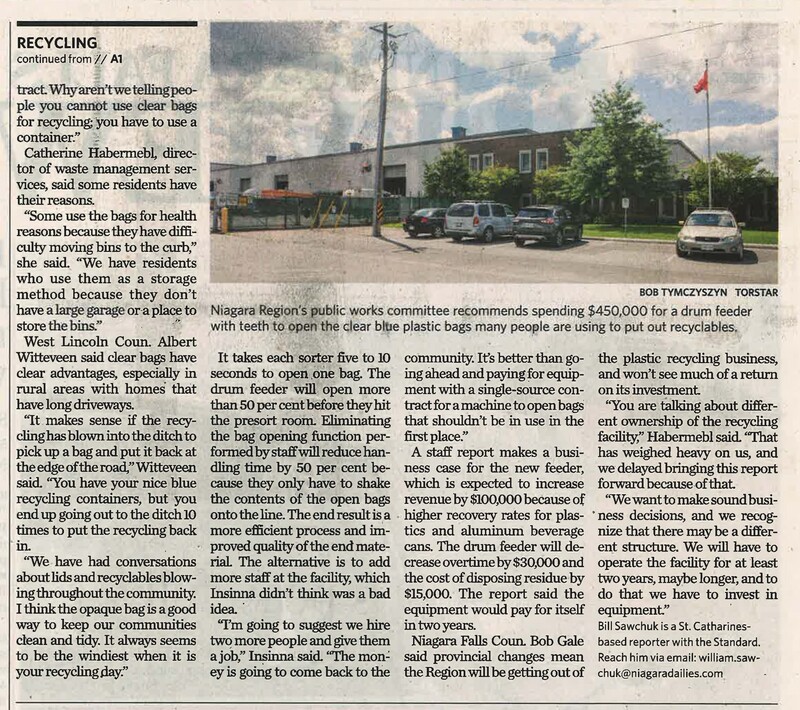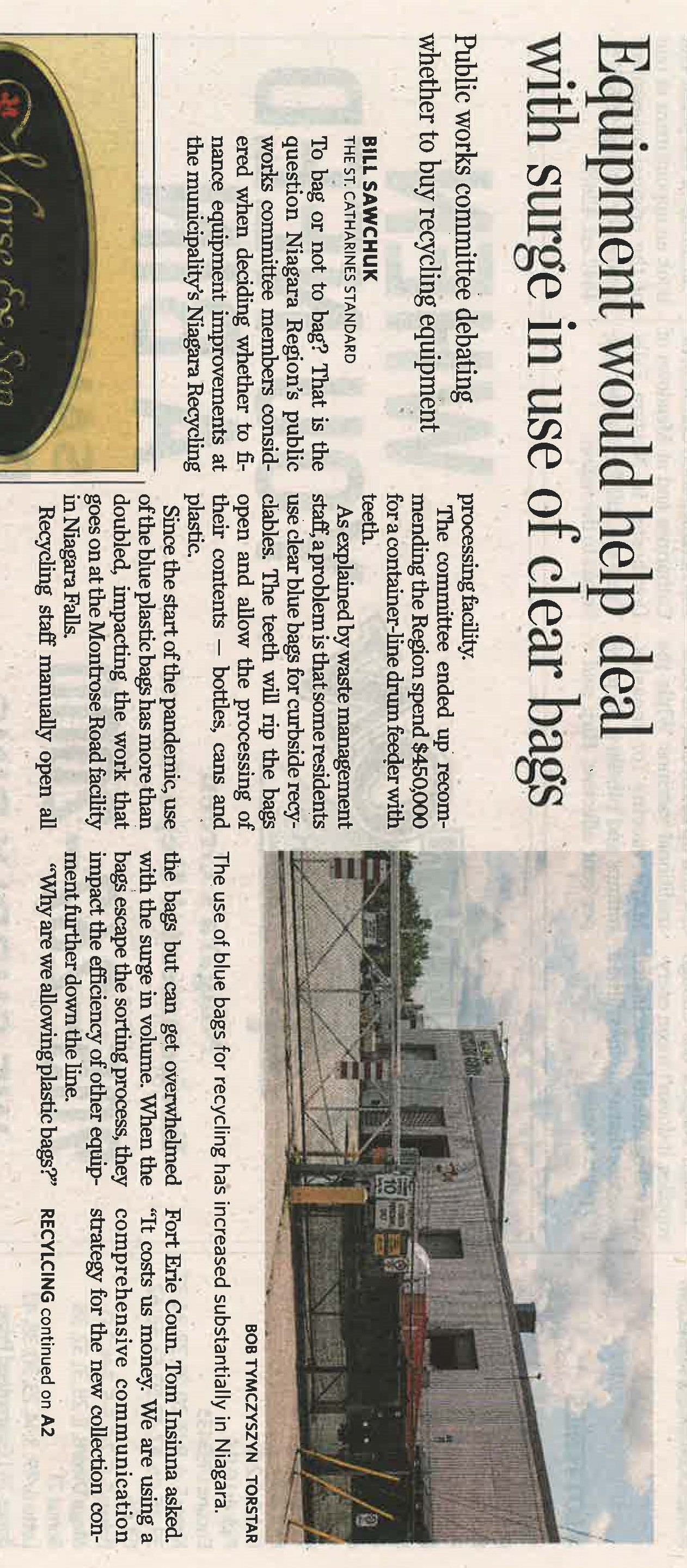 - Niagara Region public works / Niagara Recycling processing facility / Insinna, Tom / COVID-19 pandemic /